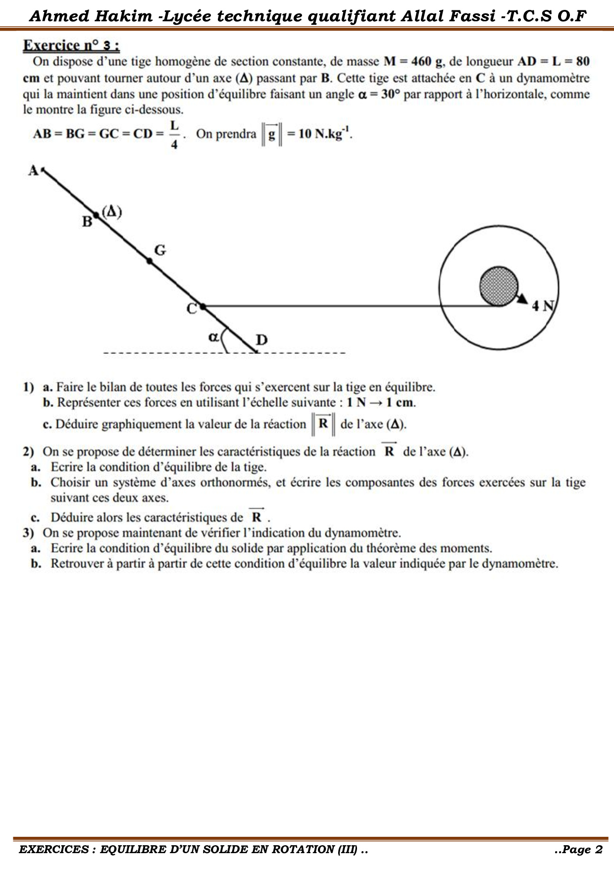 Équilibre d'un solide en rotation autour d'un axe fixe - Exercices non corrigés 7
