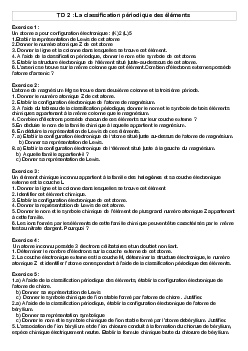 Classification périodique des éléments chimiques - Exercices non corrigés 4