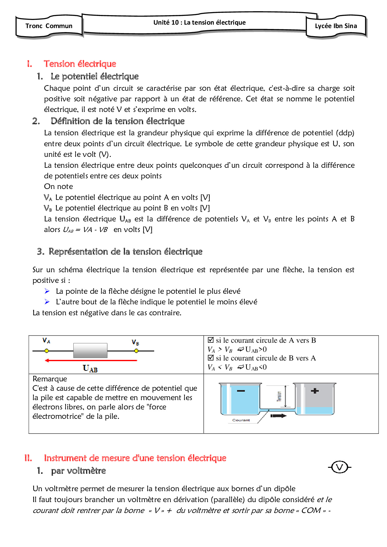 La tension électrique - Cours 5