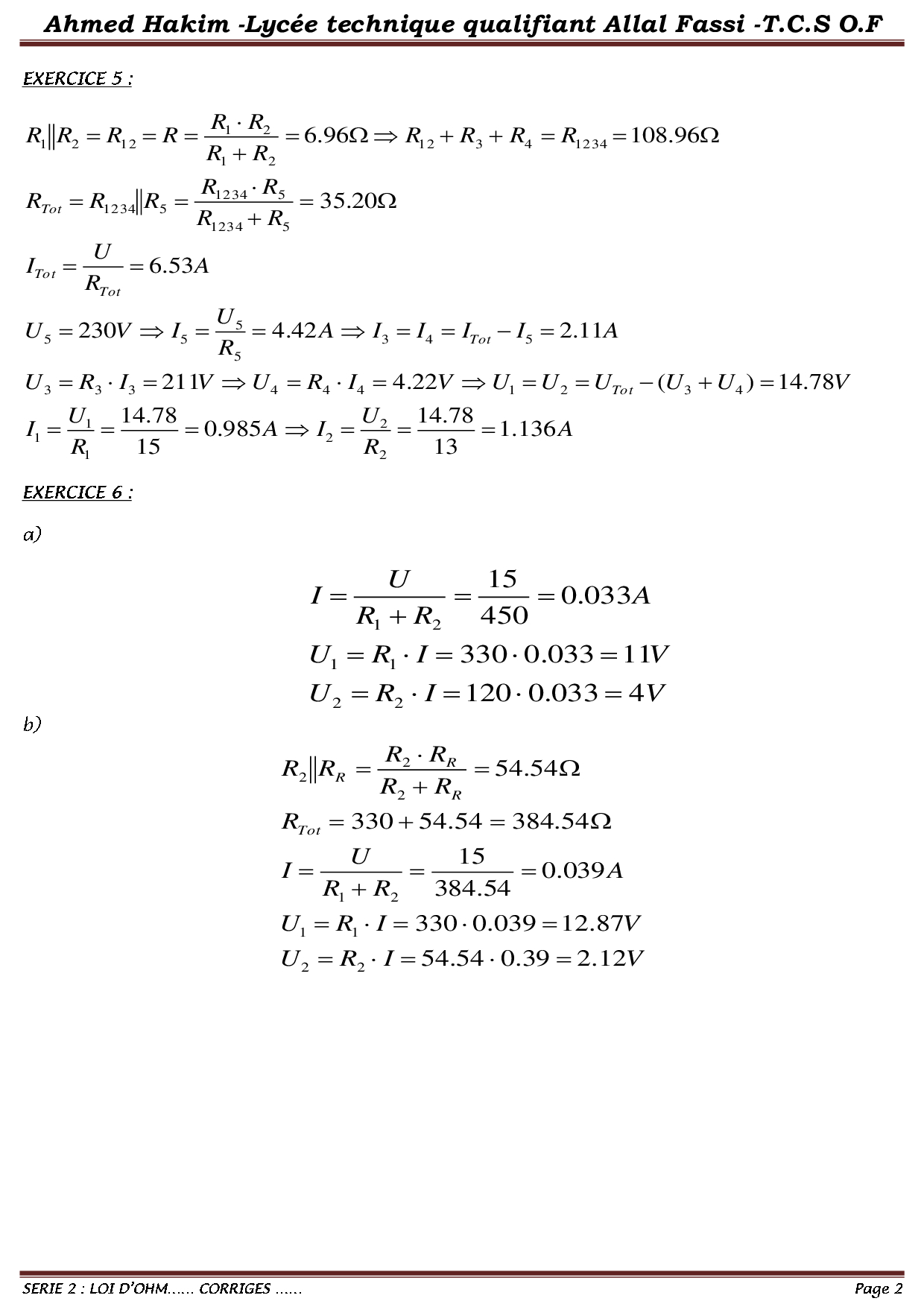 Association des conducteurs ohmiques - Corrigé série d'exercices 3
