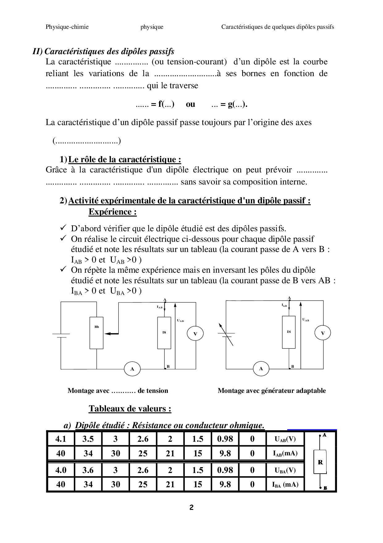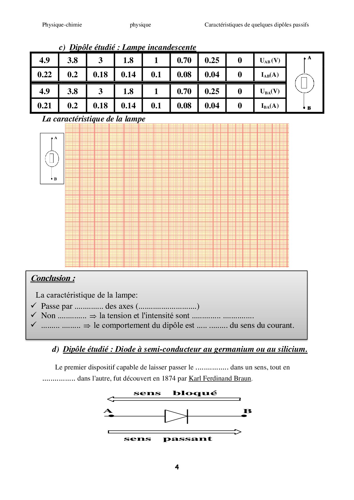 Caractéristiques de quelque dipôles passifs - Activités 1