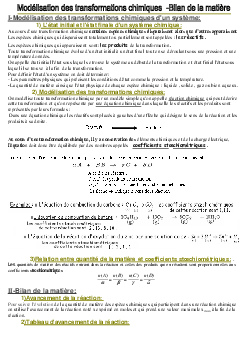 Modélisation des transformations chimiques - Bilan de la matière - Résumé de cours 2
