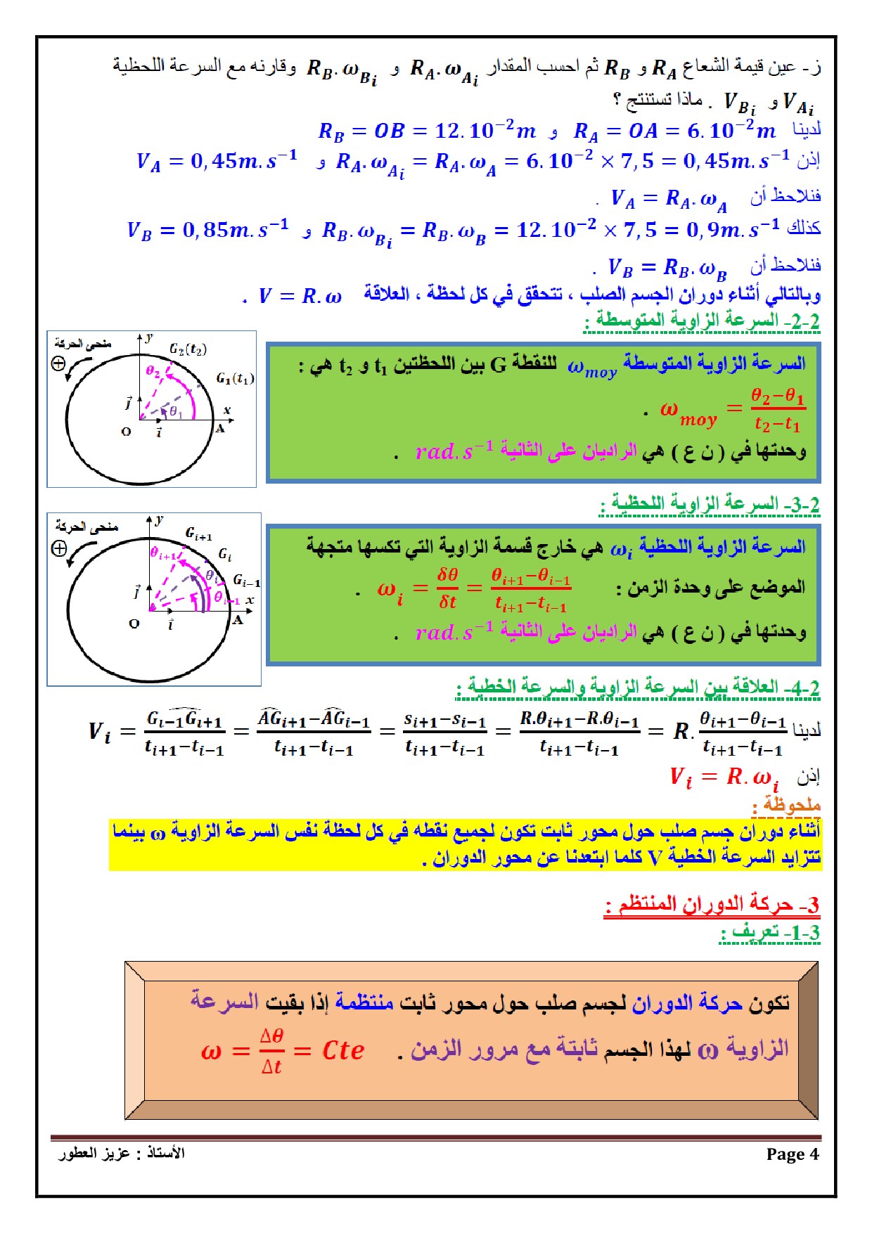 حركة دوران جسم صلب حول محور ثابت - الدرس 1