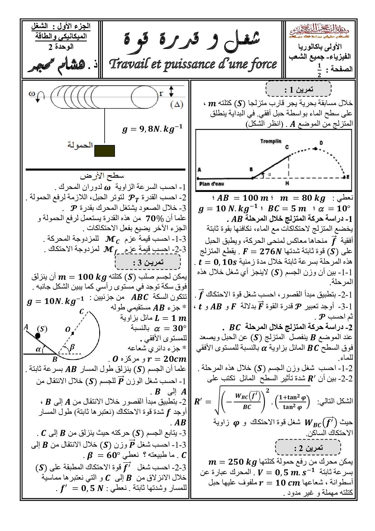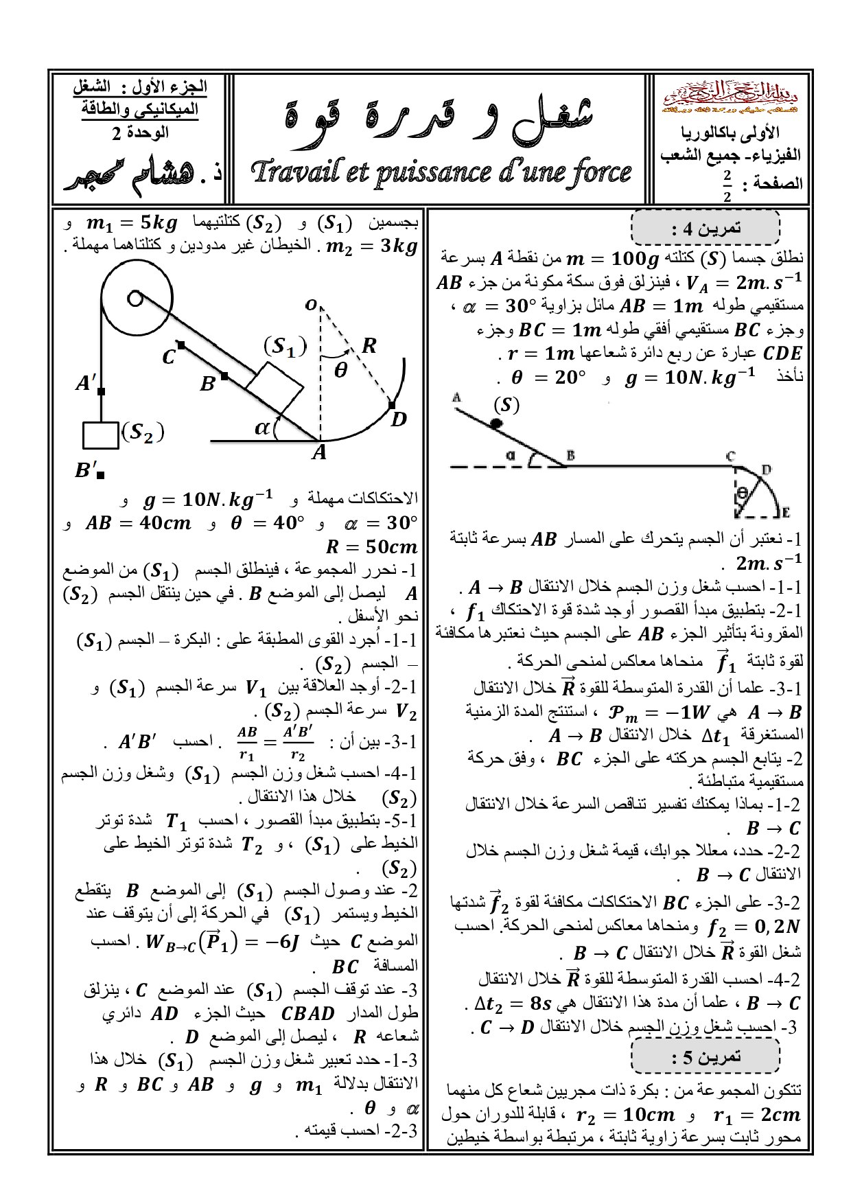 شغل وقدرة قوة - تمارين غير محلولة 1
