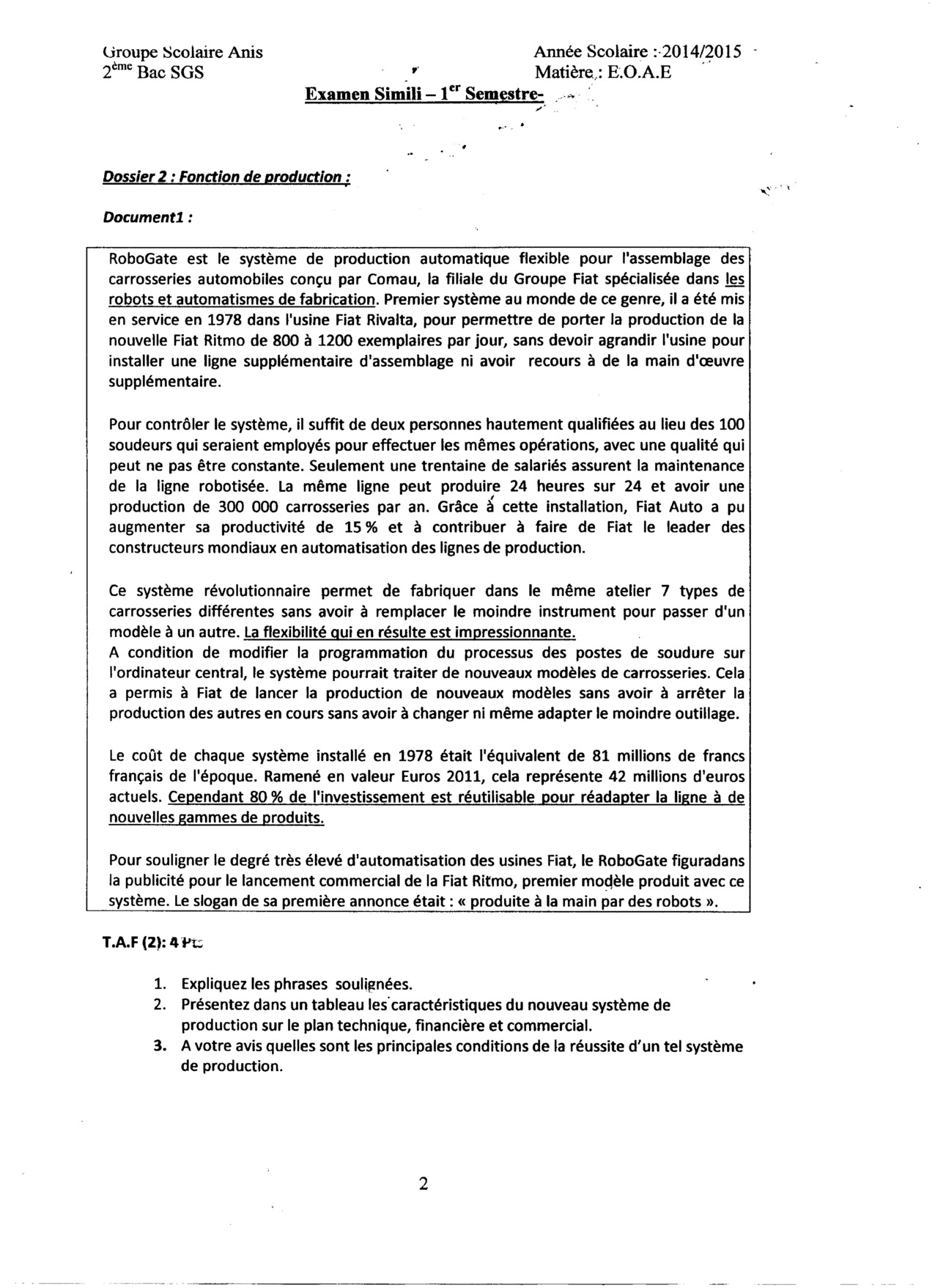 Examen Simili 13 - EOAE 2 Bac Eco