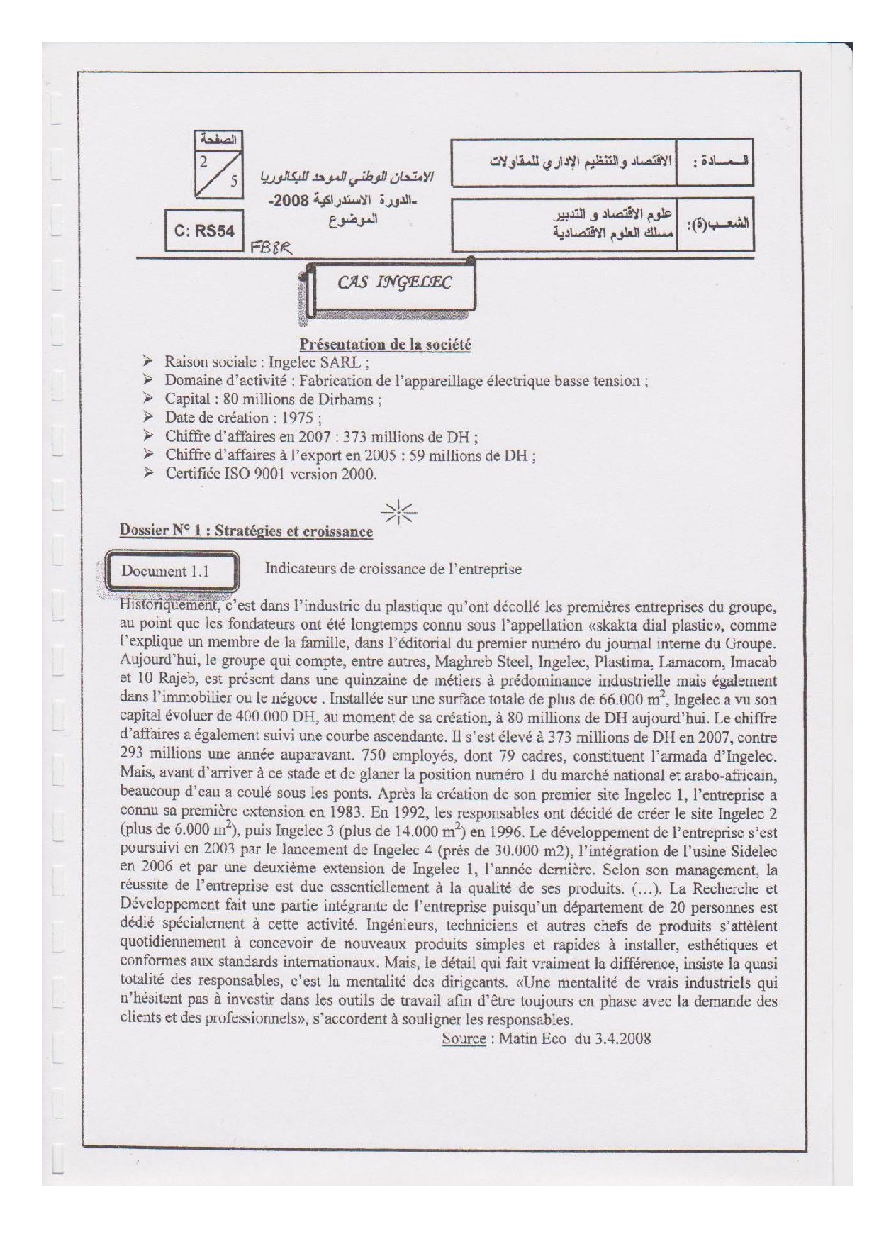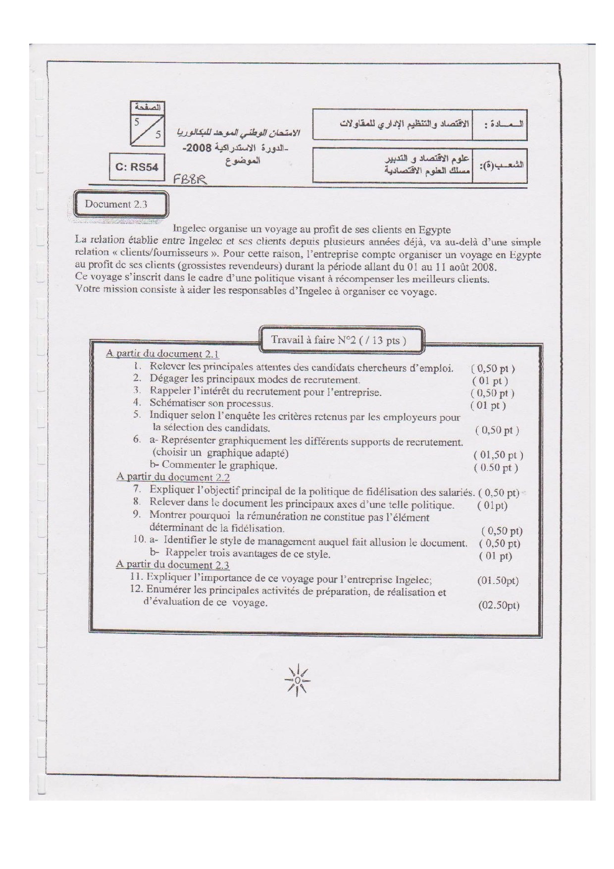 Examen EOAE 2 Bac Eco 2008 Session Rattrapage - Sujet