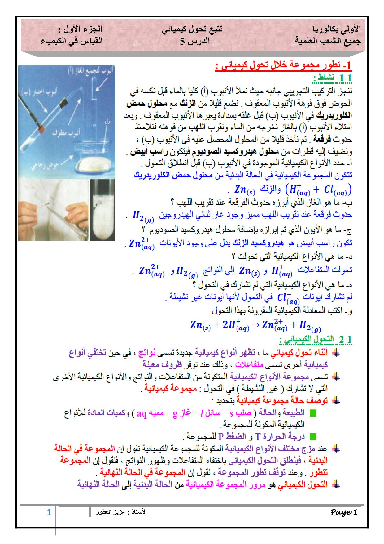 الفيزياء والكيمياء: الأولى باك علوم تجريبية