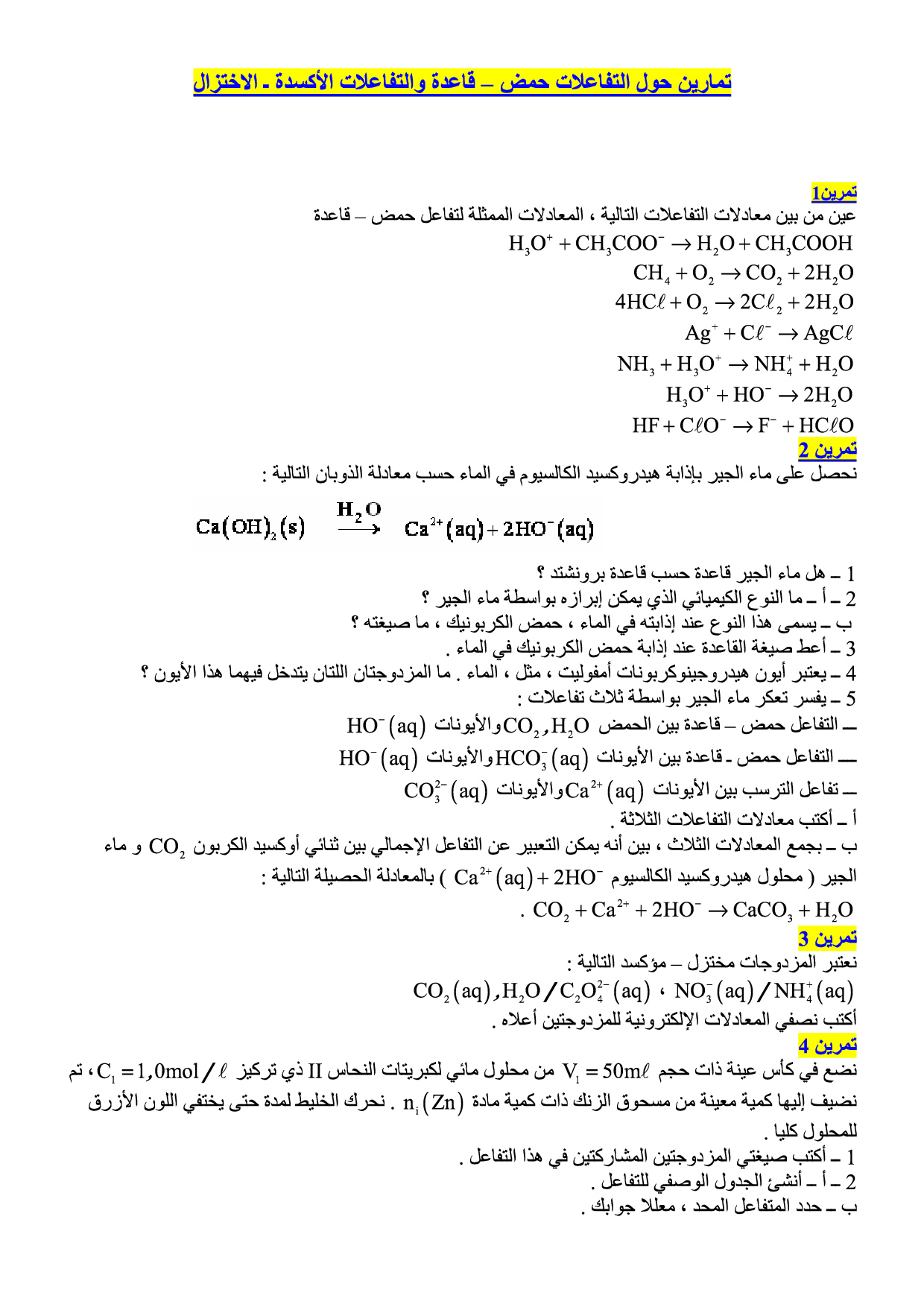 التفاعلات حمض قاعدة - تمارين غير محلولة 5