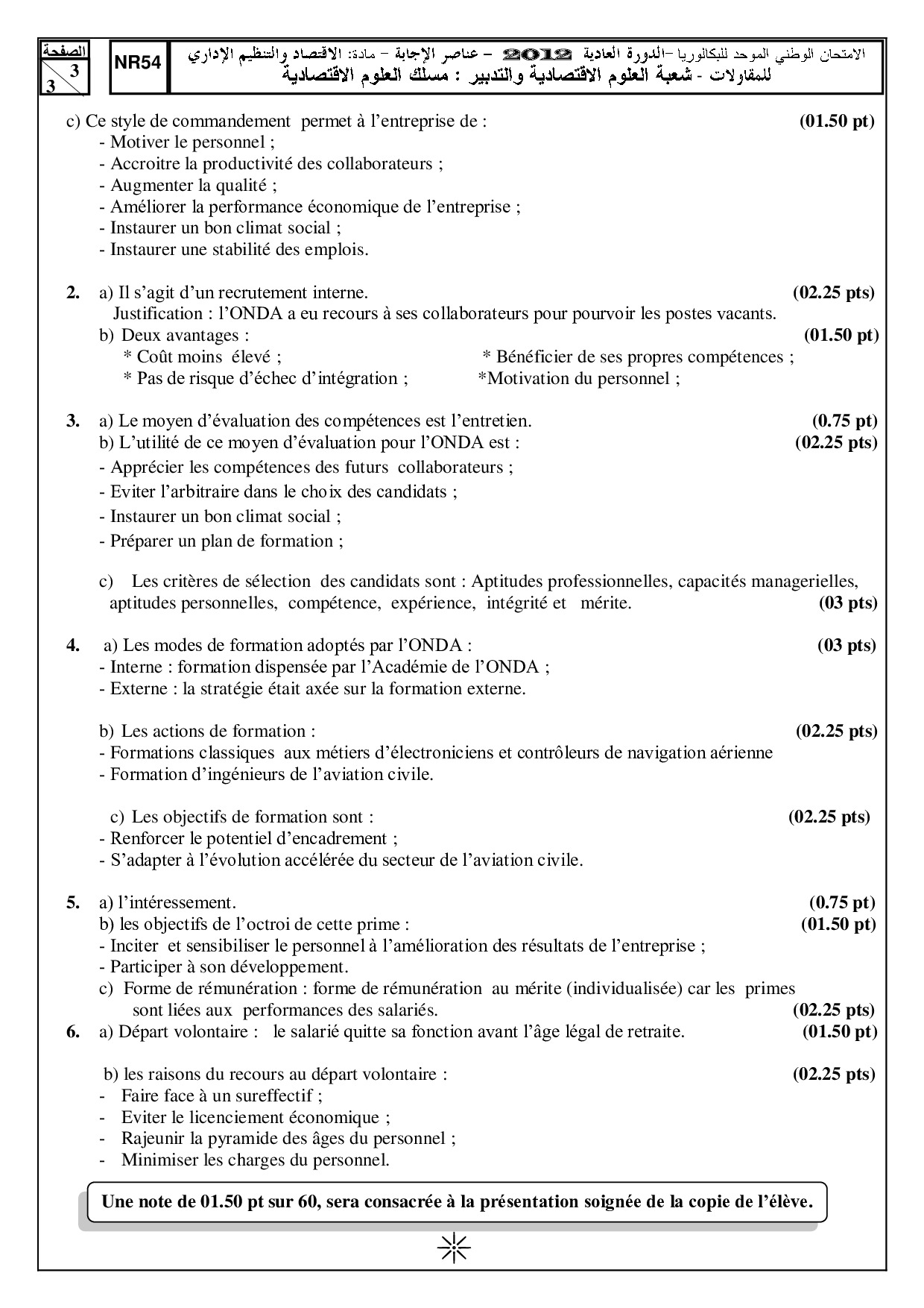 Examen EOAE 2 Bac Eco 2012 Session Normale - Corrigé
