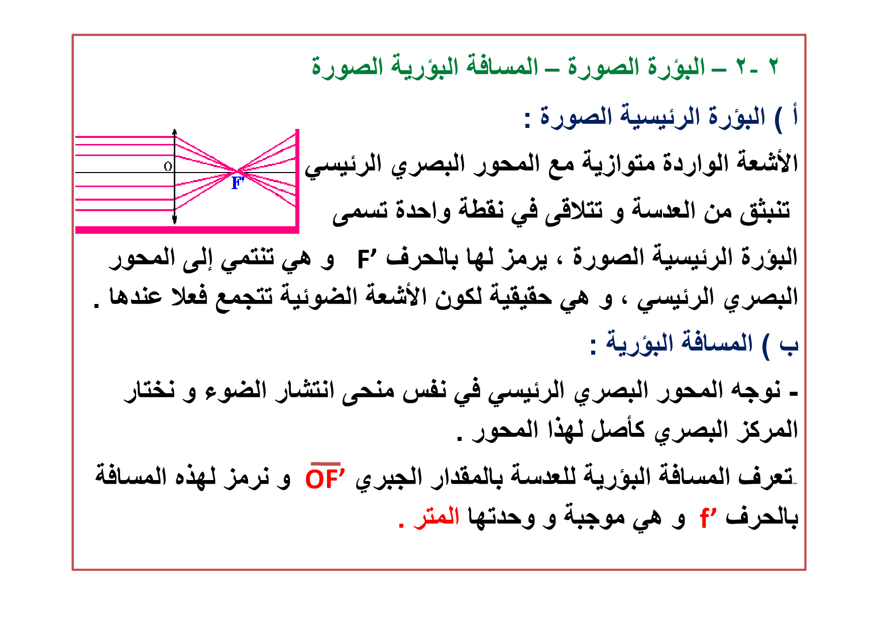 الصور المحصل عليها بواسطة عدسة رقيقة مجمعة