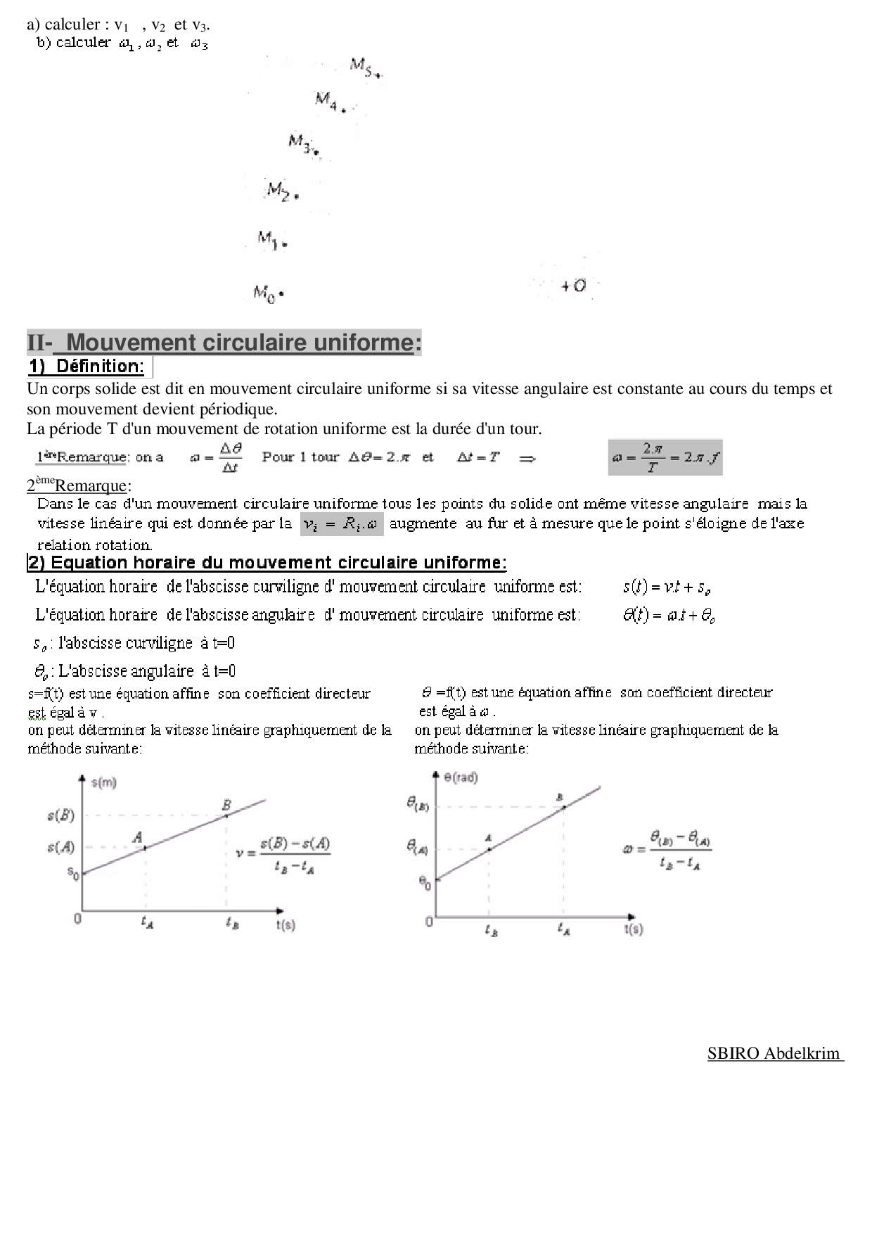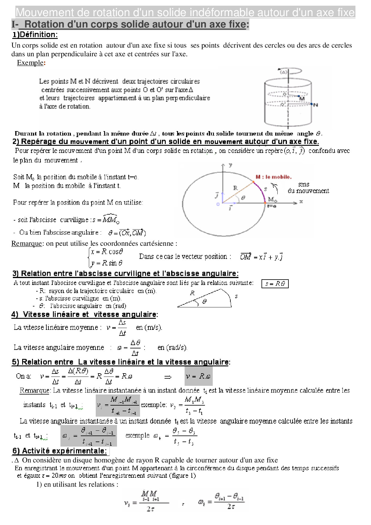 Rotation d'un solide indéformable autour d'un axe fixe - Résumé de cours 2