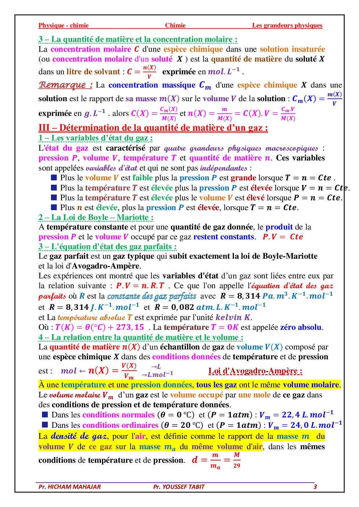 Grandeurs physiques liées à la quantité de matière - Cours 1
