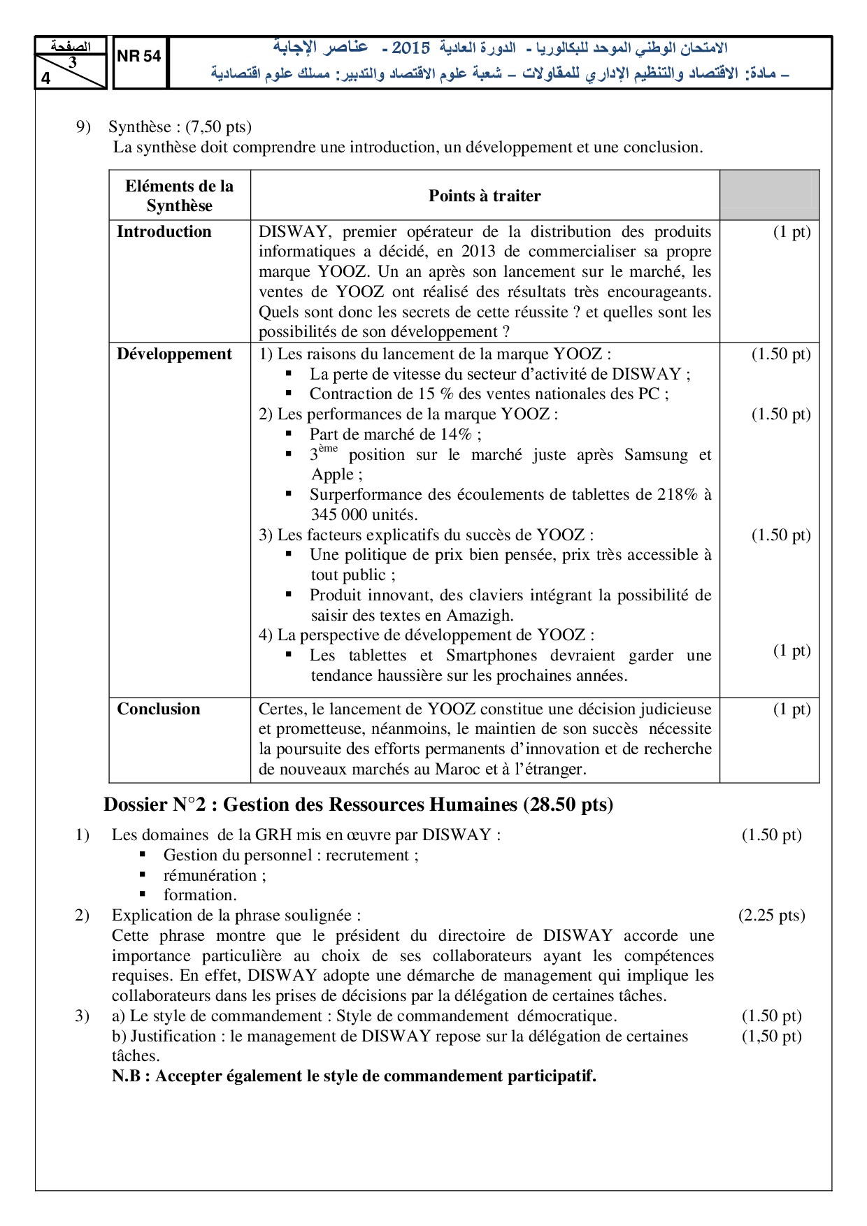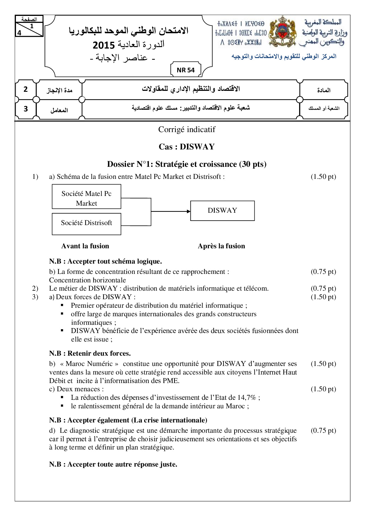 Examen EOAE 2 Bac Eco 2015 Session Normale - Corrigé