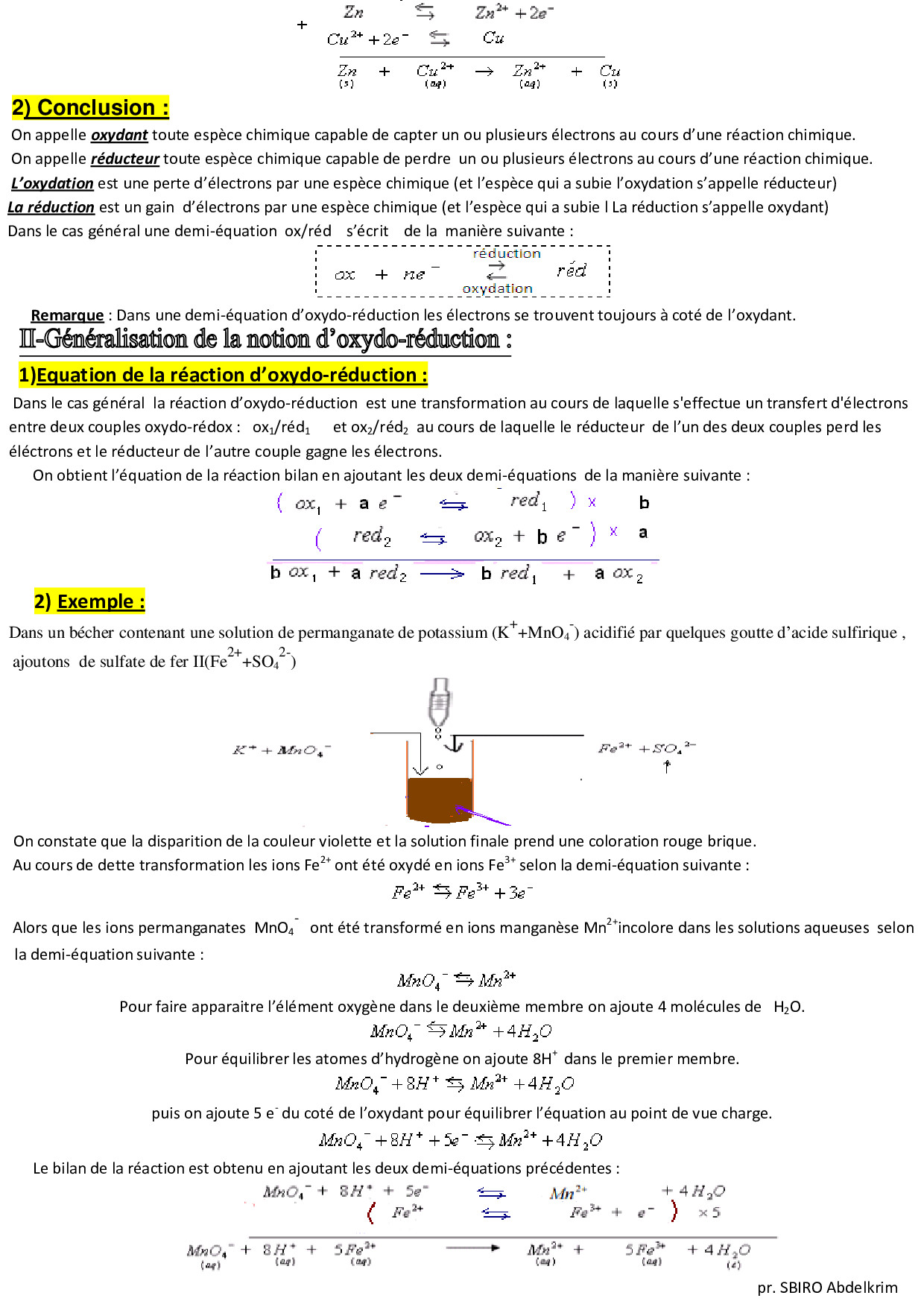 Les réactions d'oxydo-réduction - Résumé de cours 2