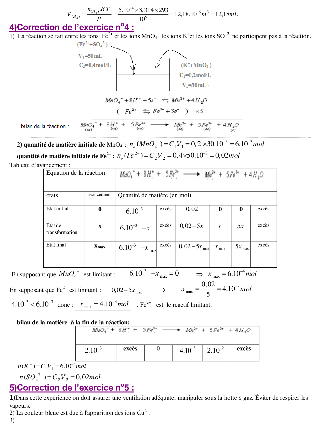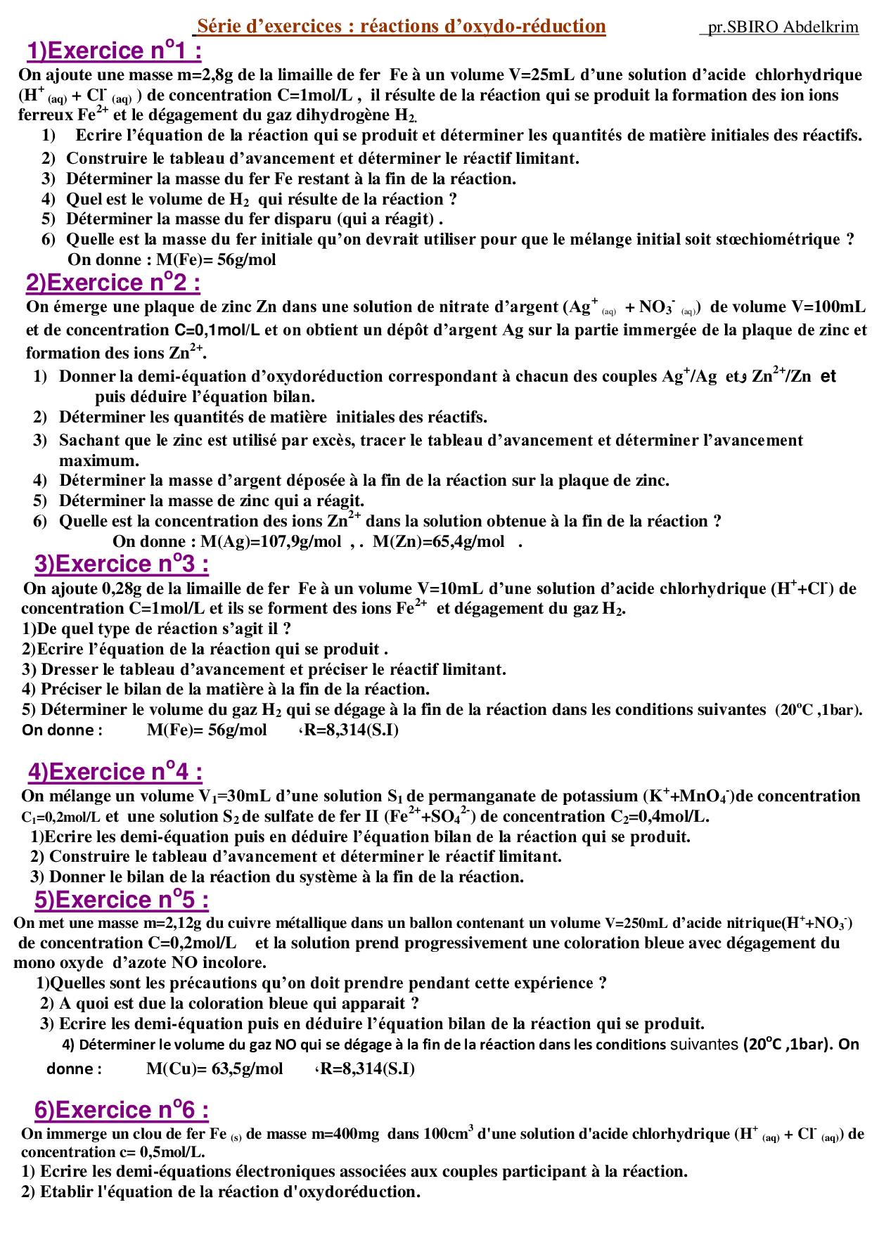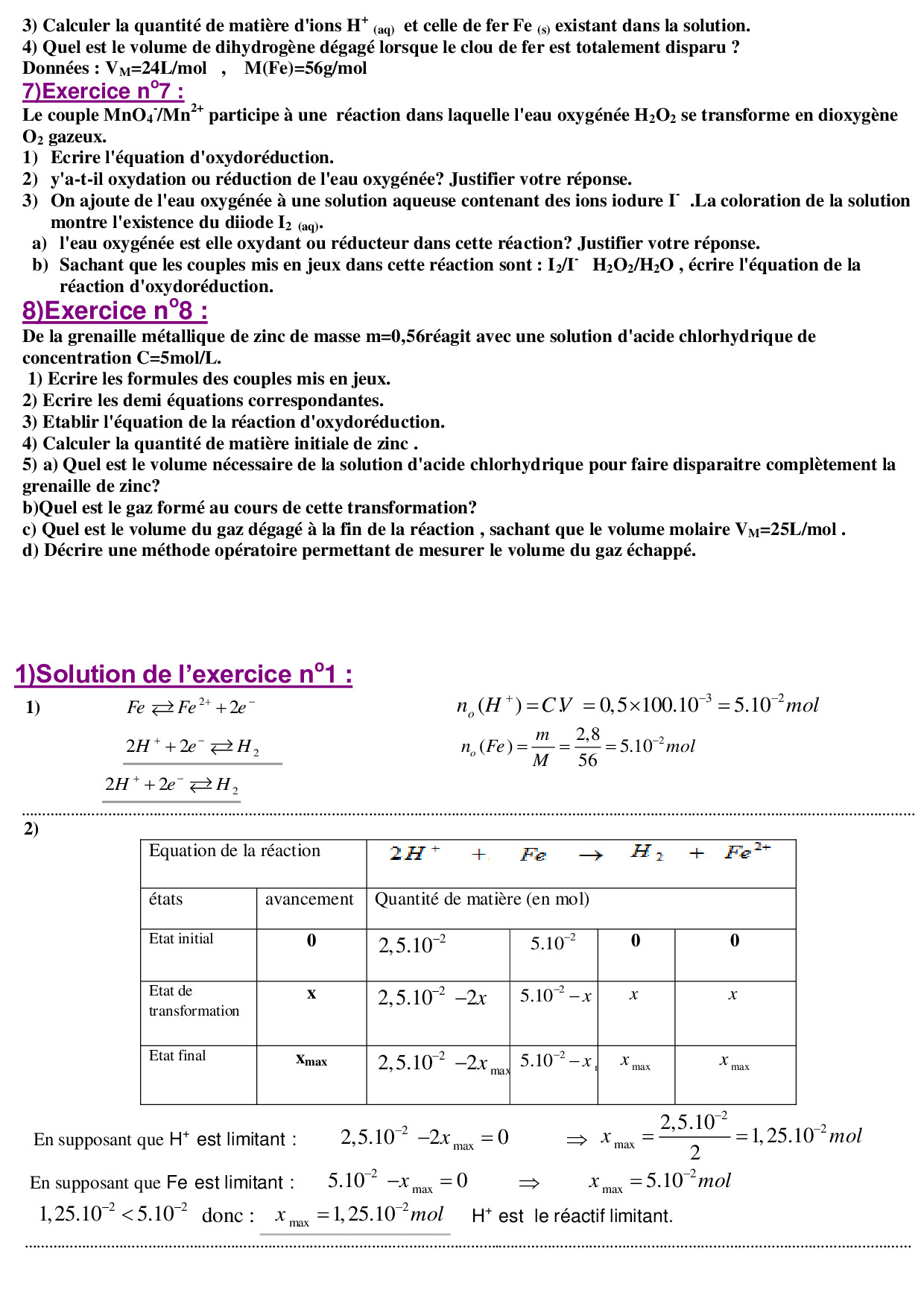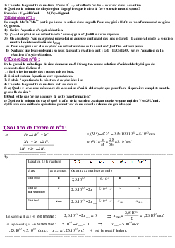 Les réactions d'oxydo-réduction - Exercices corrigés 2