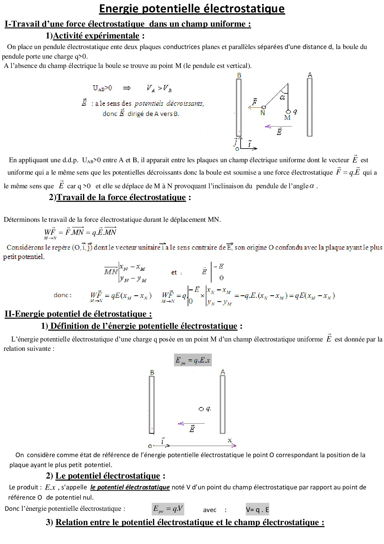 Énergie potentielle d'une charge électrique dans un champ électrique uniforme (Sciences Maths)
