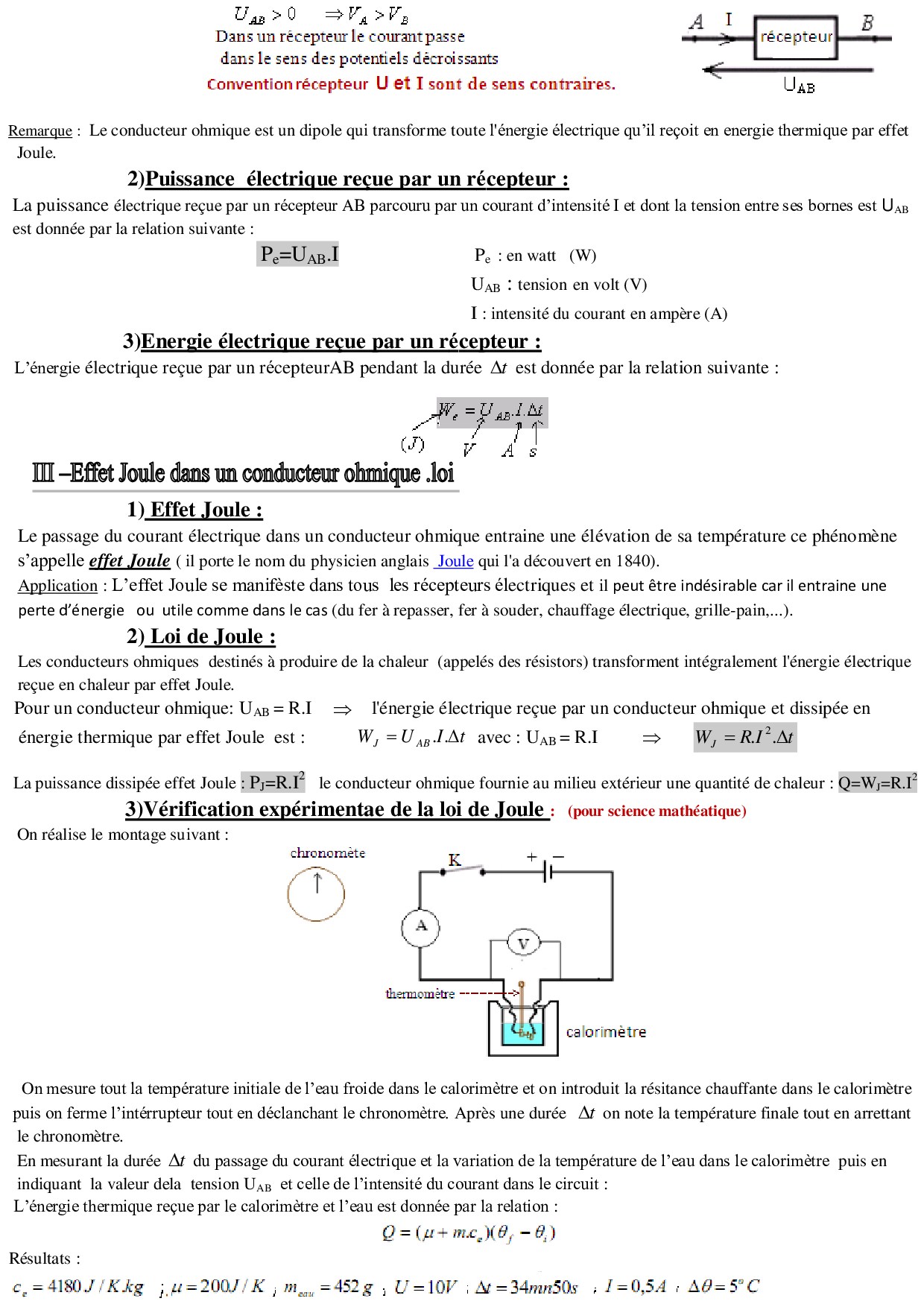 Transfert d'énergie dans un circuit électrique - Résumé de cours 2