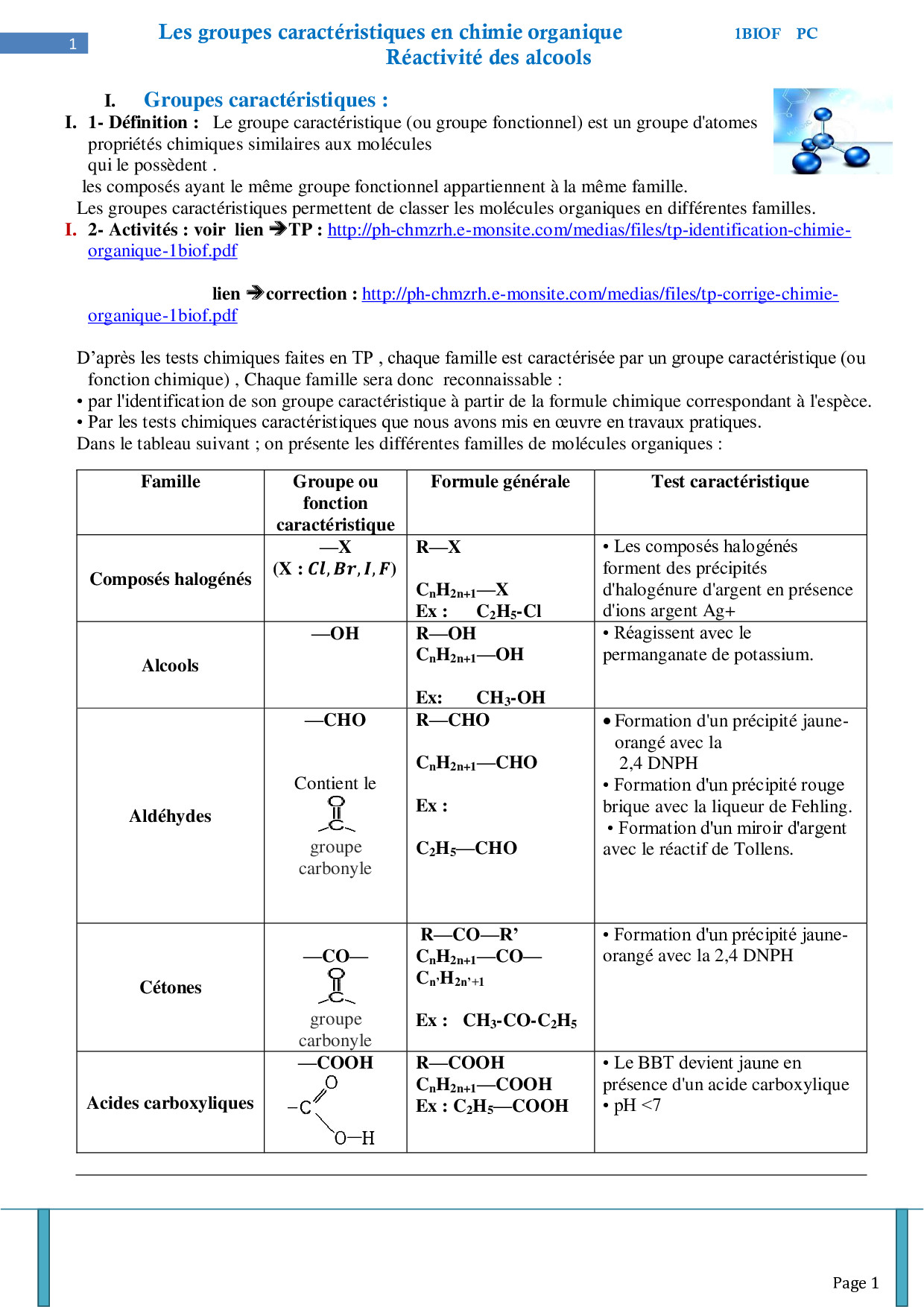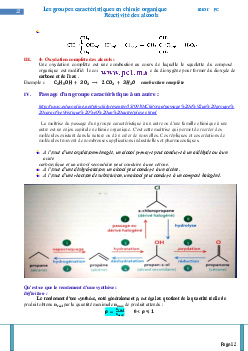 Les groupes caractéristiques en chimie organique - La réactivité des alcools - Cours 2