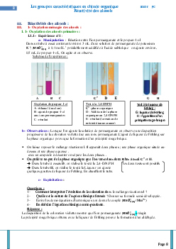 Les groupes caractéristiques en chimie organique - La réactivité des alcools