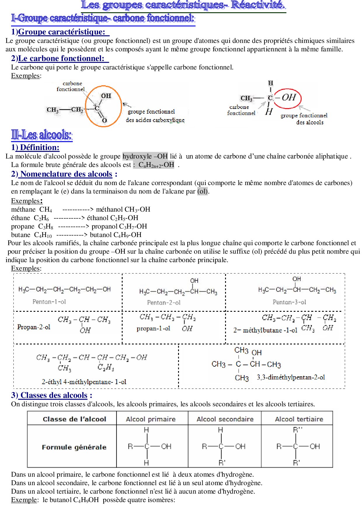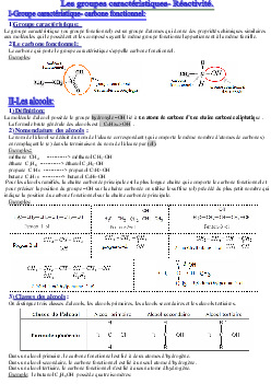Les groupes caractéristiques en chimie organique - La réactivité des alcools - Résumé de cours 1