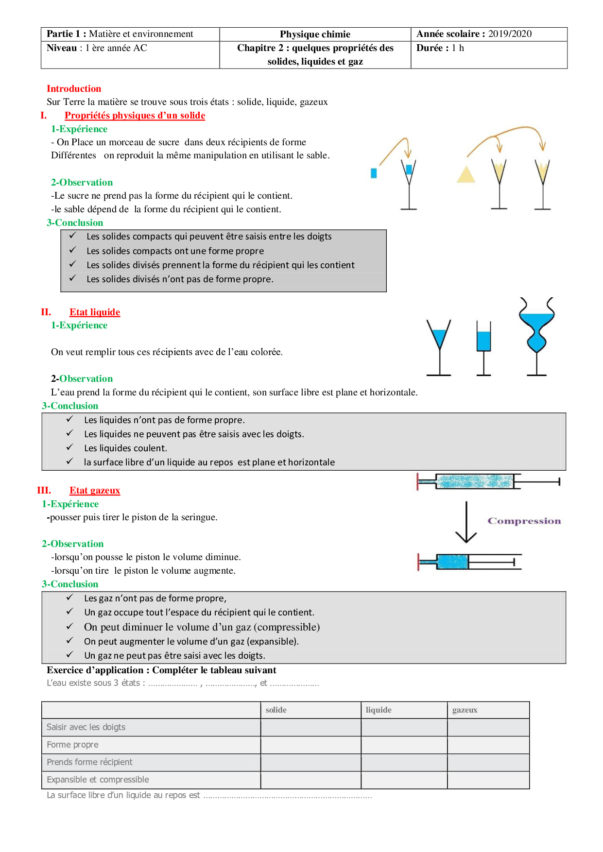 Physique et Chimie 1ère Année Collège