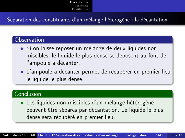 La séparation des constituants d'un mélange - Cours 3