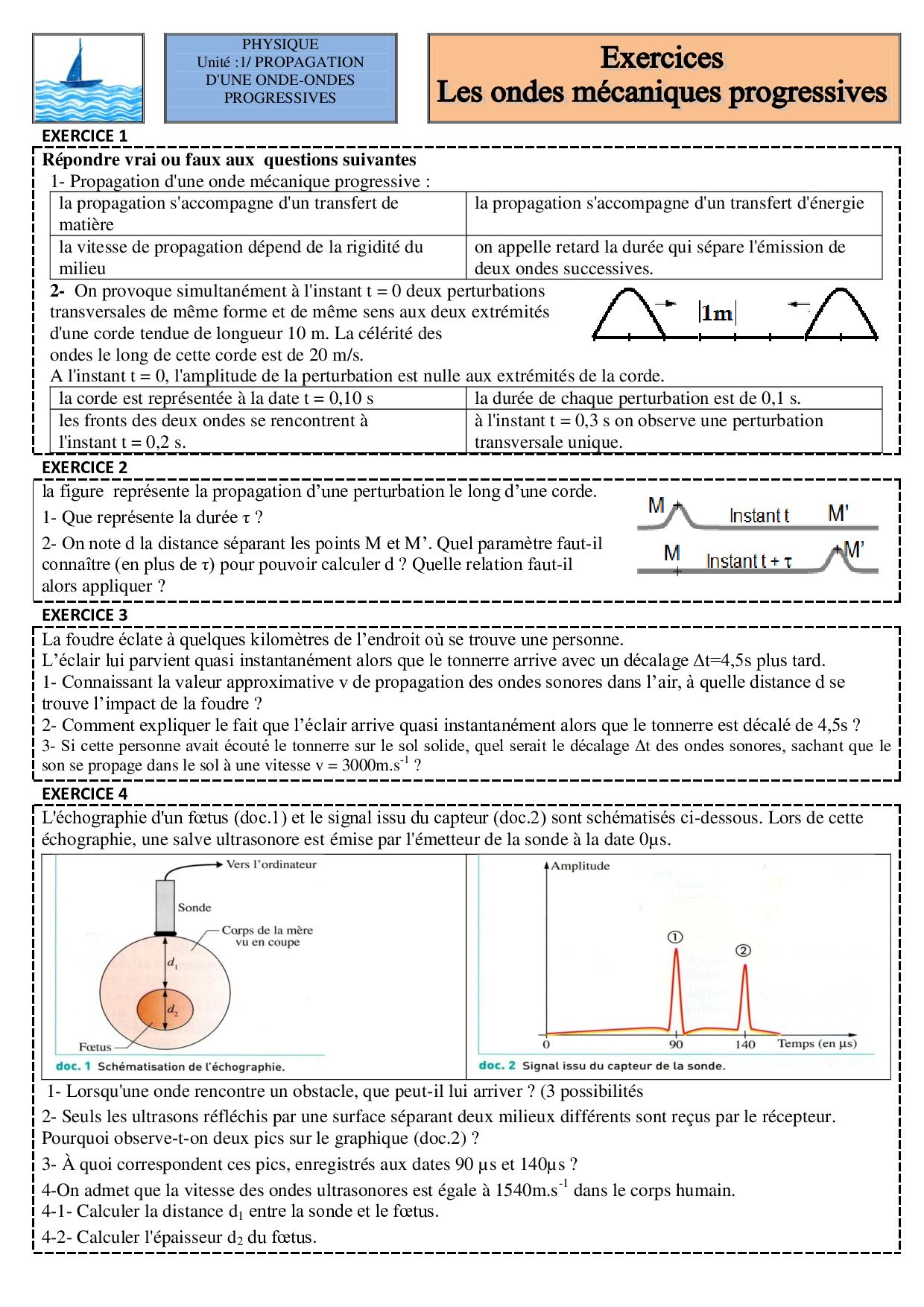 Ondes mécaniques progressives - Exercices non corrigés 12