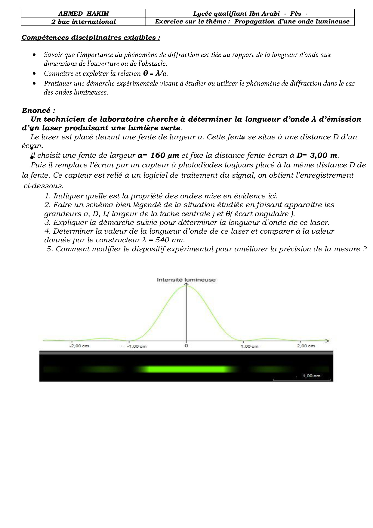 Propagation des ondes lumineuses - Exercices non corrigés 8