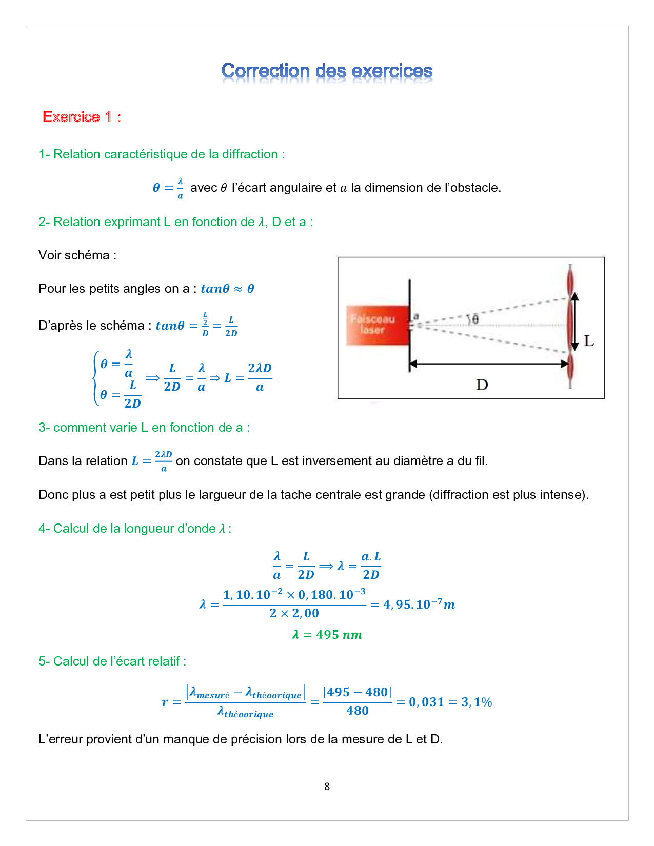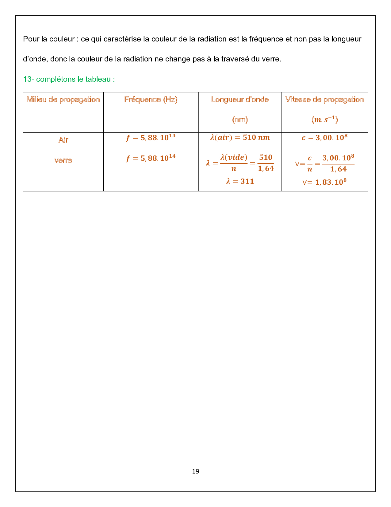 Propagation des ondes lumineuses - Corrigé série d'exercices 1