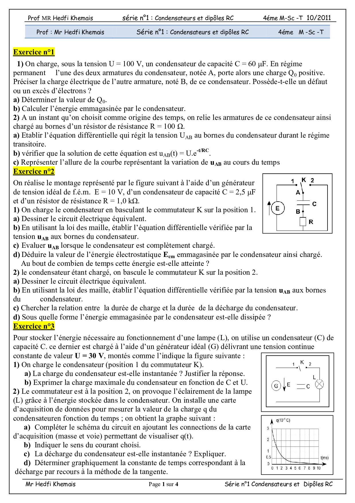 Dipôle RC - Exercices non corrigés 4