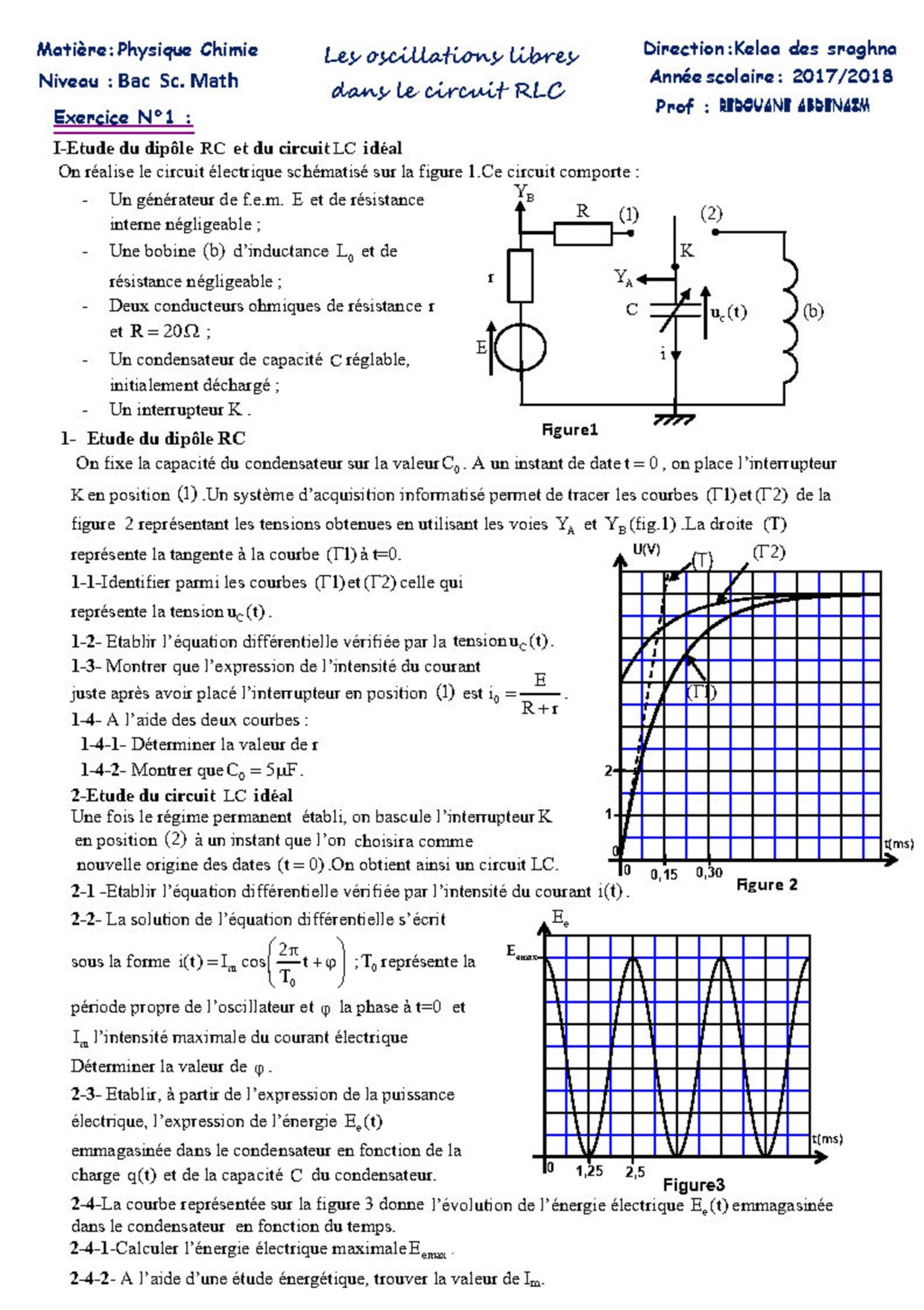 Oscillations libres d'un circuit RLC série - Exercices non corrigés 6