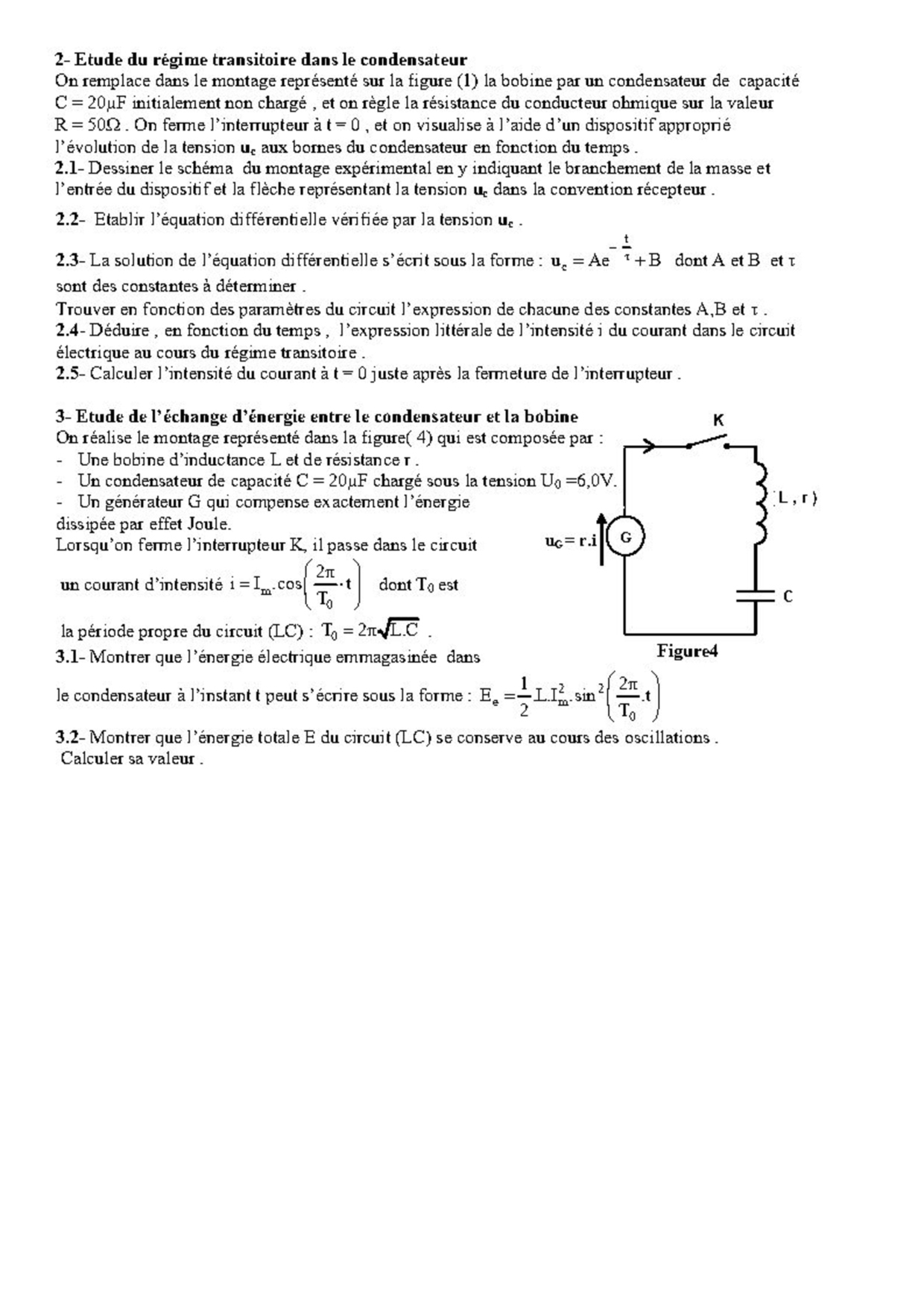 Oscillations libres d'un circuit RLC série - Exercices non corrigés 6