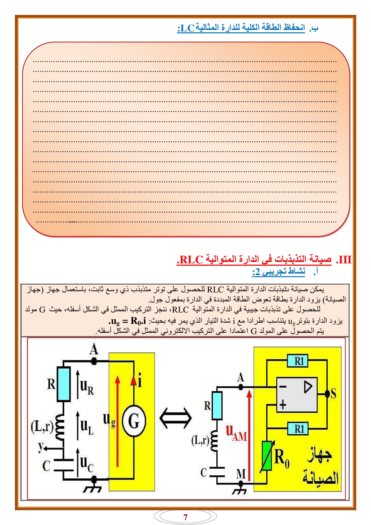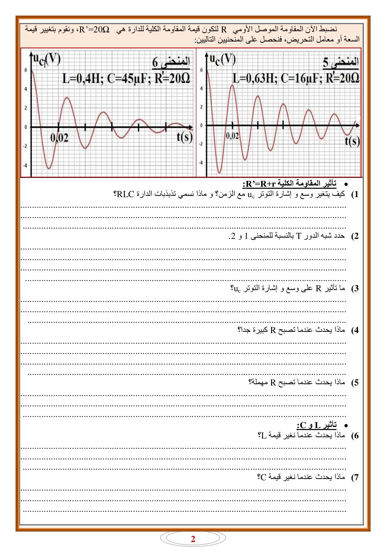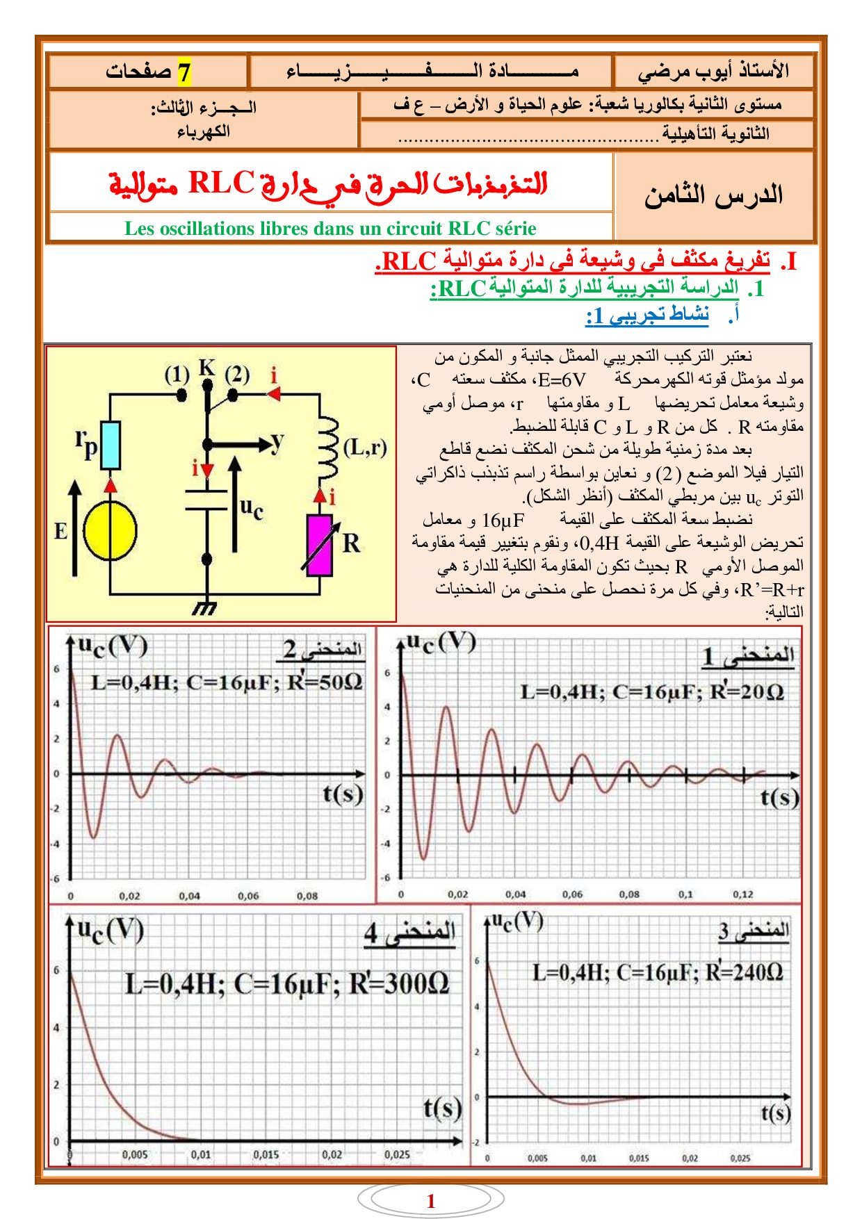 التذبذبات الحرة في دارة RLC متوالية - أنشطة 1