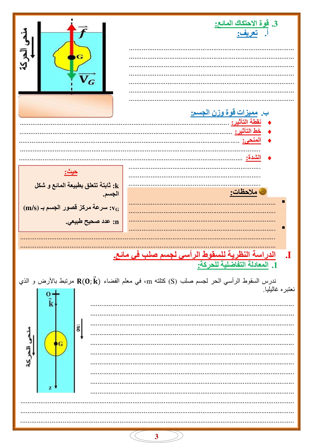 السقوط الرأسي لجسم صلب - أنشطة 1