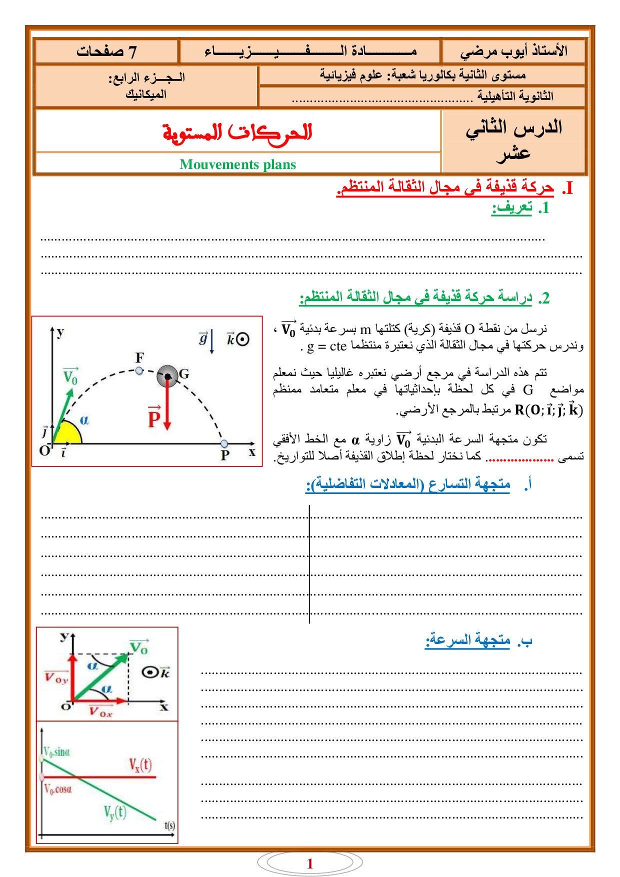 الحركات المستوية - أنشطة 1