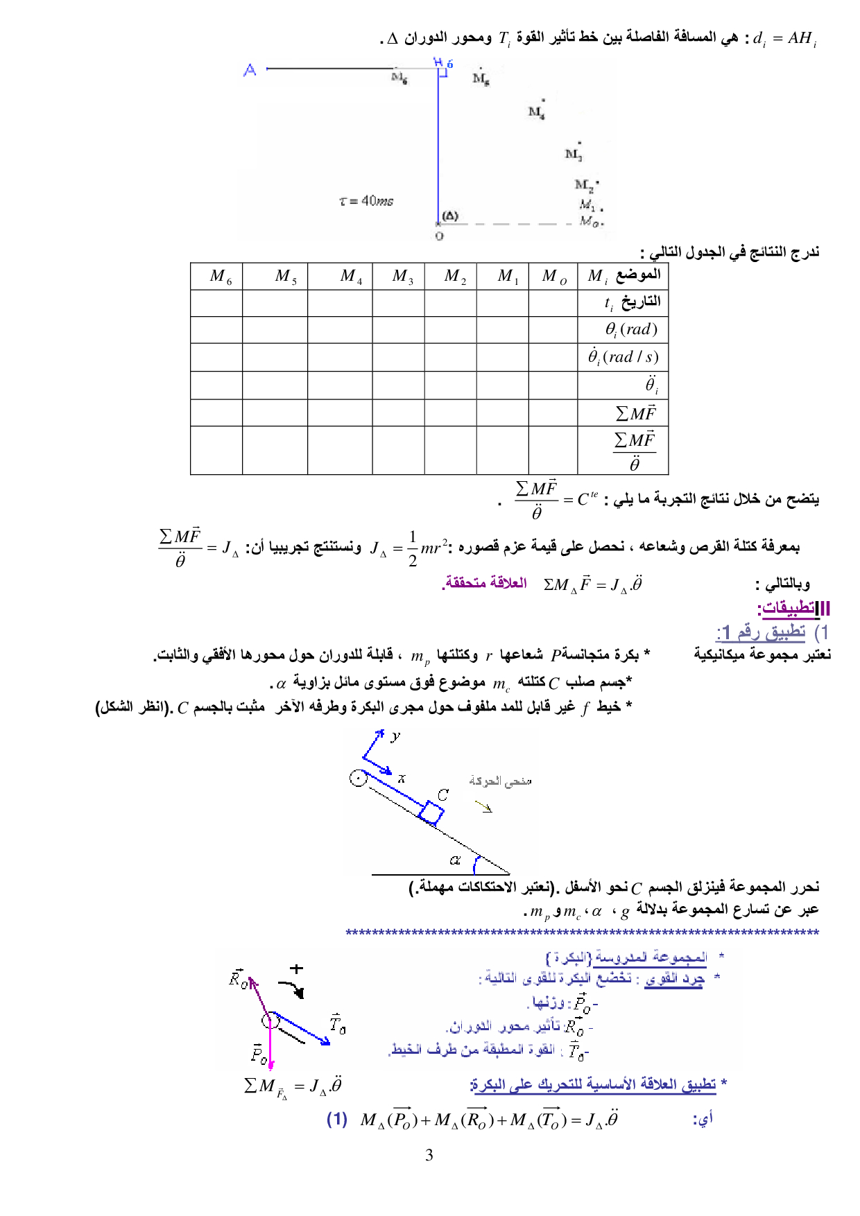 تطبيقات قوانين نيوتن: حركة دوران جسم صلب حول محور ثابت