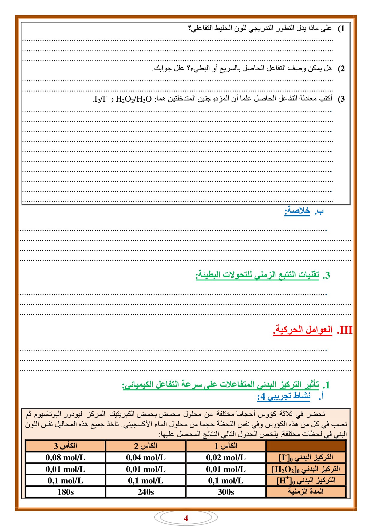 التحولات السريعة والتحولات البطيئة - أنشطة 2