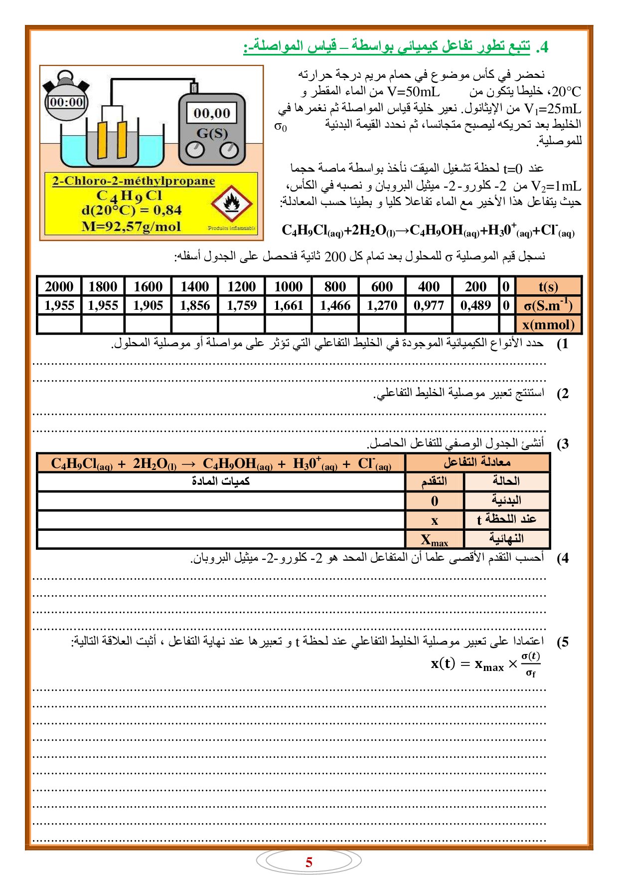 التتبع الزمني لتحول كيميائي - سرعة التفاعل - أنشطة 1