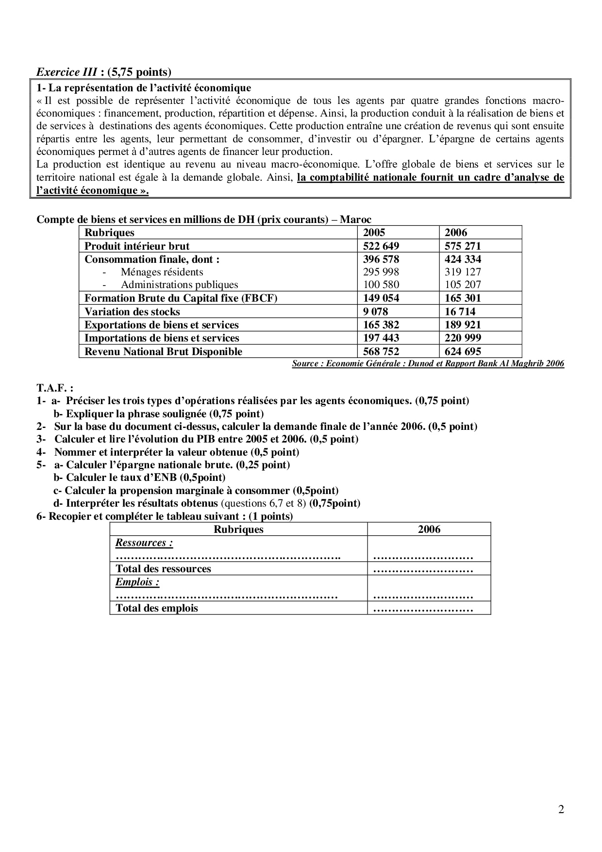 Économie générale et Statistiques : 2ème BAC Sciences Économiques