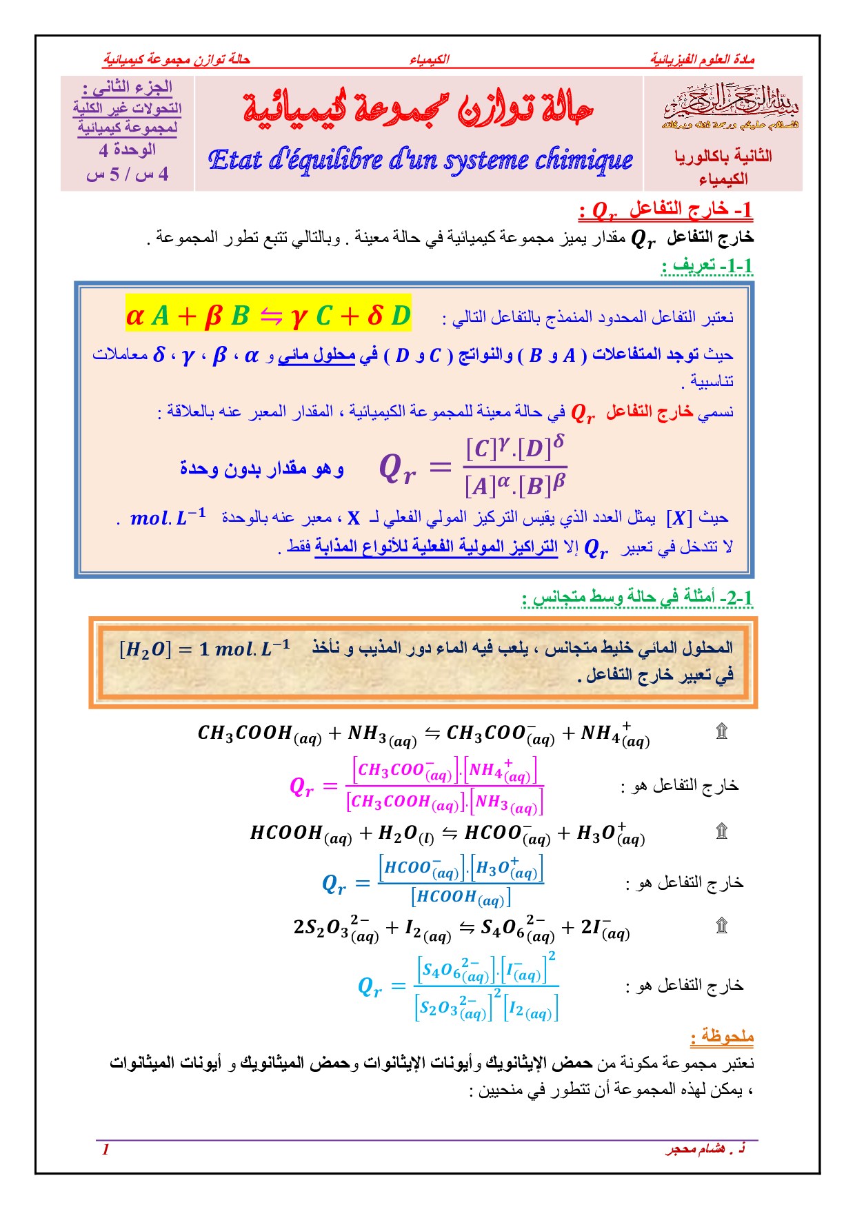 حالة توازن مجموعة كيميائية - الدرس 2