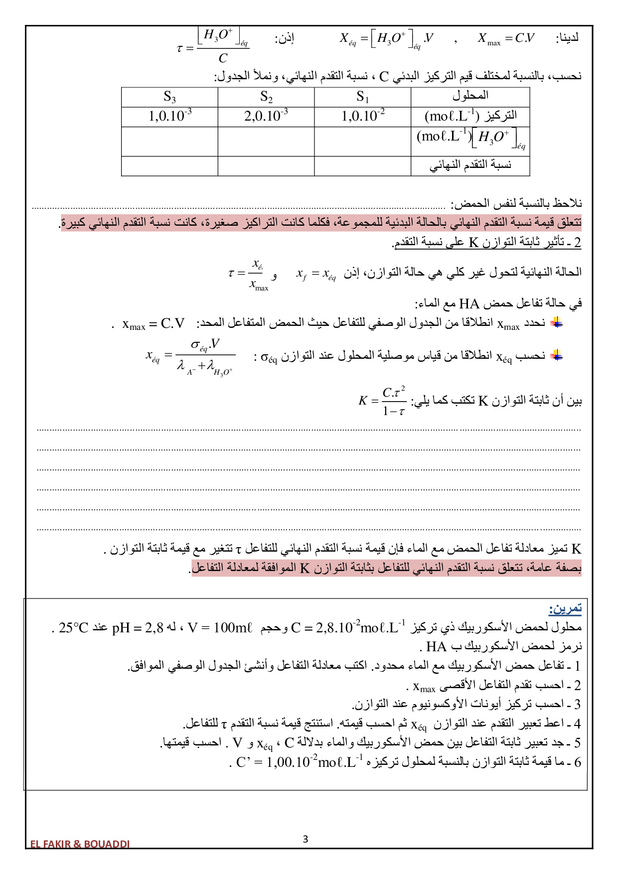 حالة توازن مجموعة كيميائية - ملخص الدرس 3