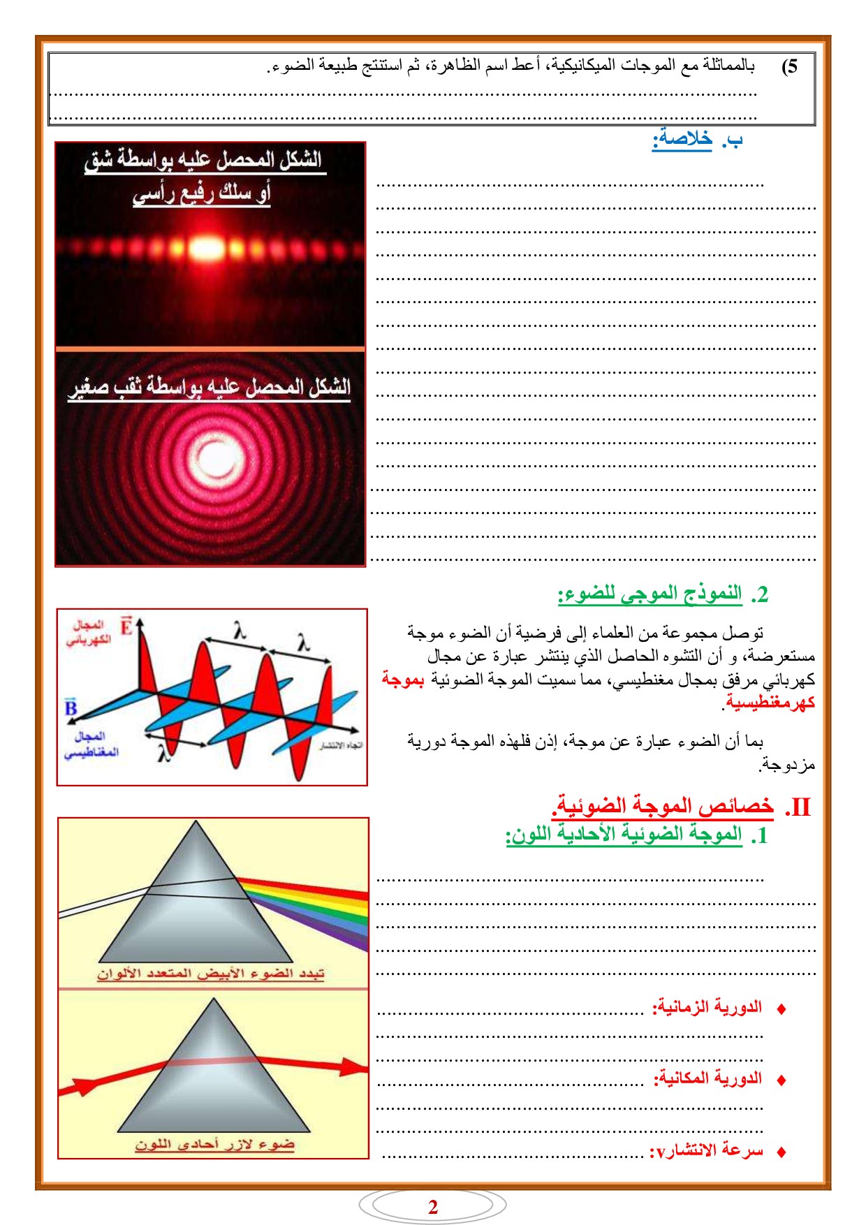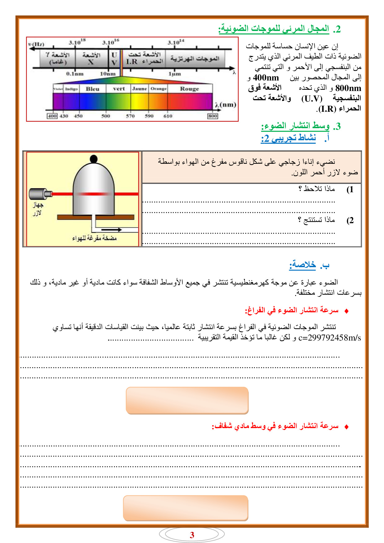 انتشار موجة ضوئية - أنشطة 1