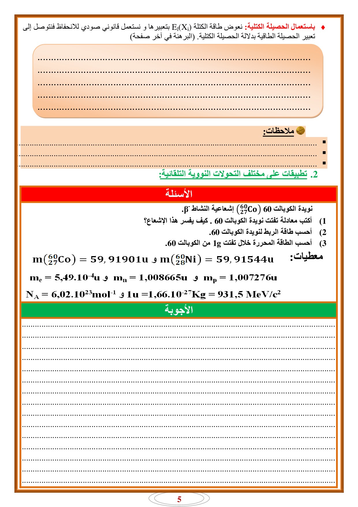 النوى والكتلة والطاقة - أنشطة 1