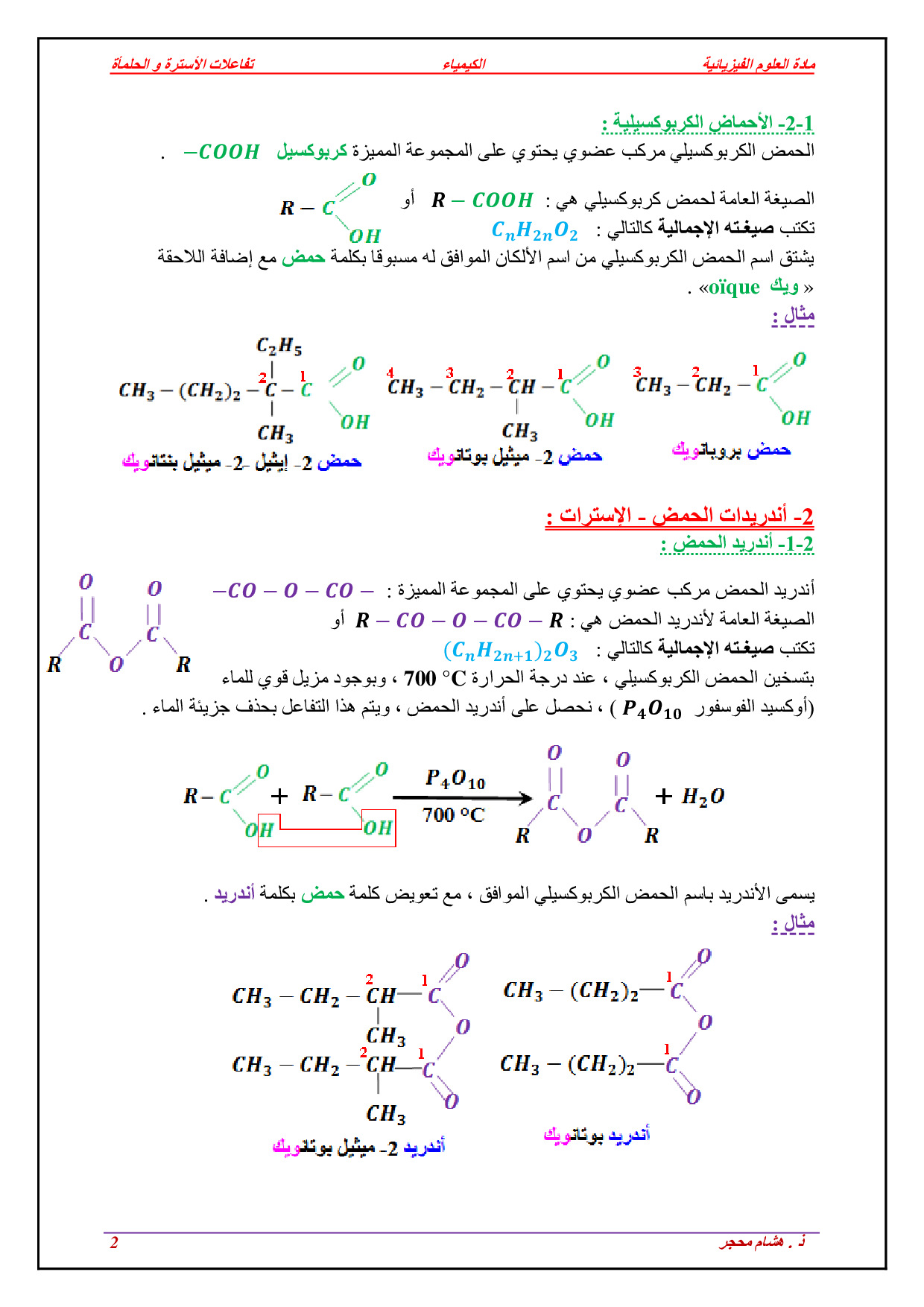 تفاعلات الأسترة والحلمأة - الدرس 1