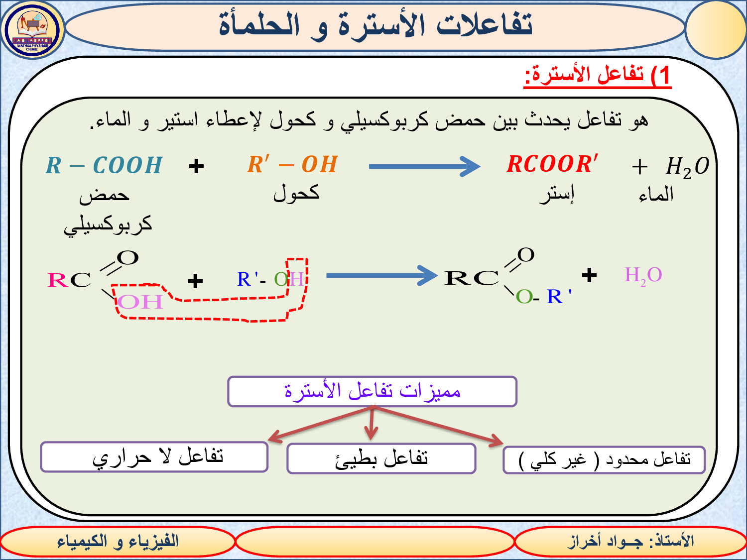 تفاعلات الأسترة والحلمأة - الدرس 5