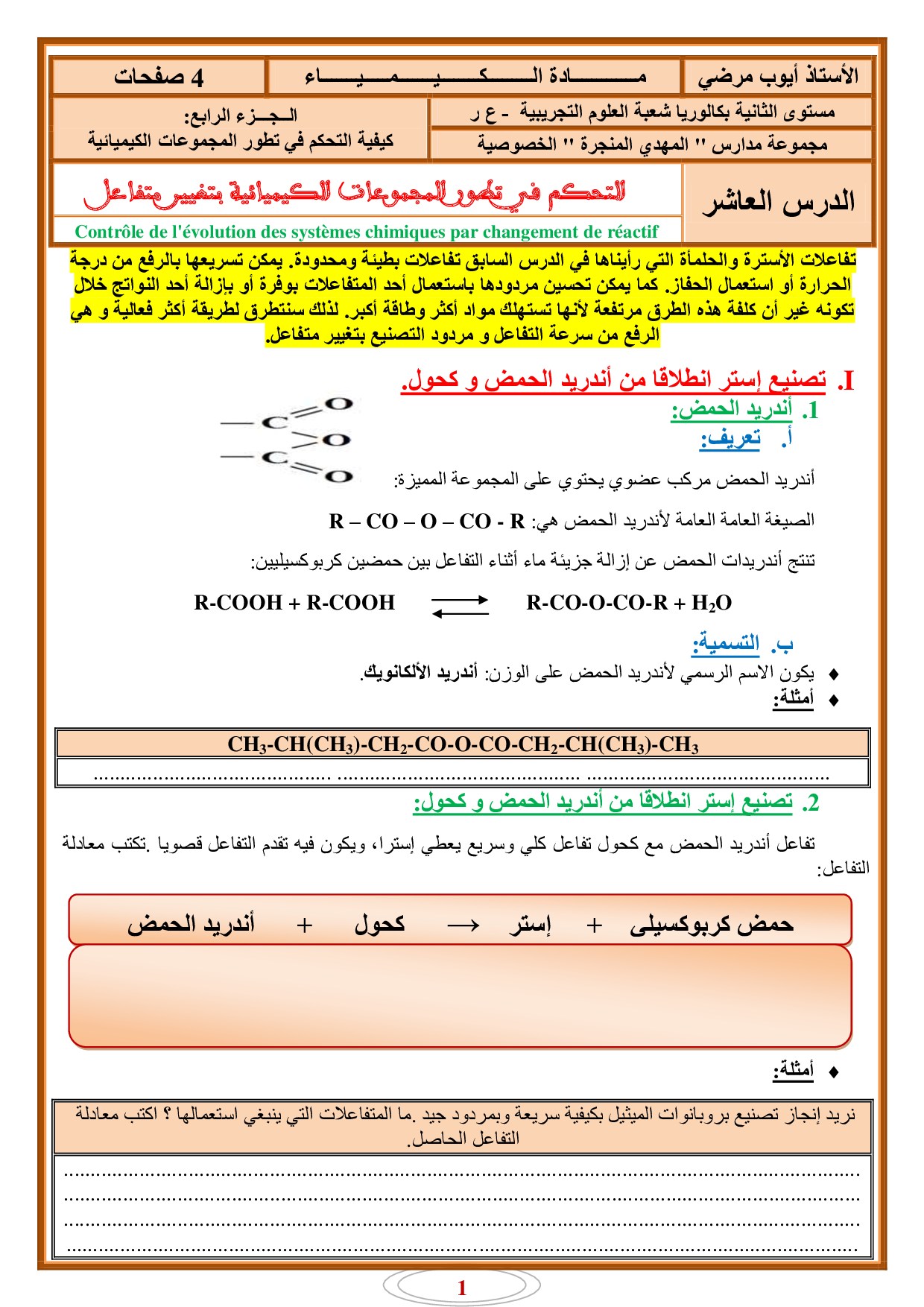 التحكم في تطور المجموعات الكيميائية بتغيير متفاعل - الدرس 2