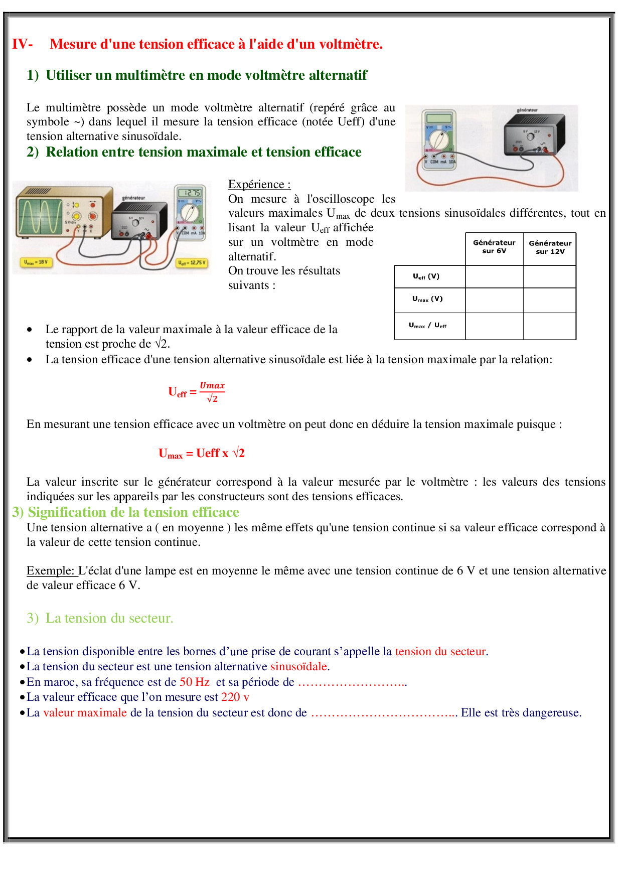 Le courant électrique alternatif sinusoïdal - Résumé de cours 3