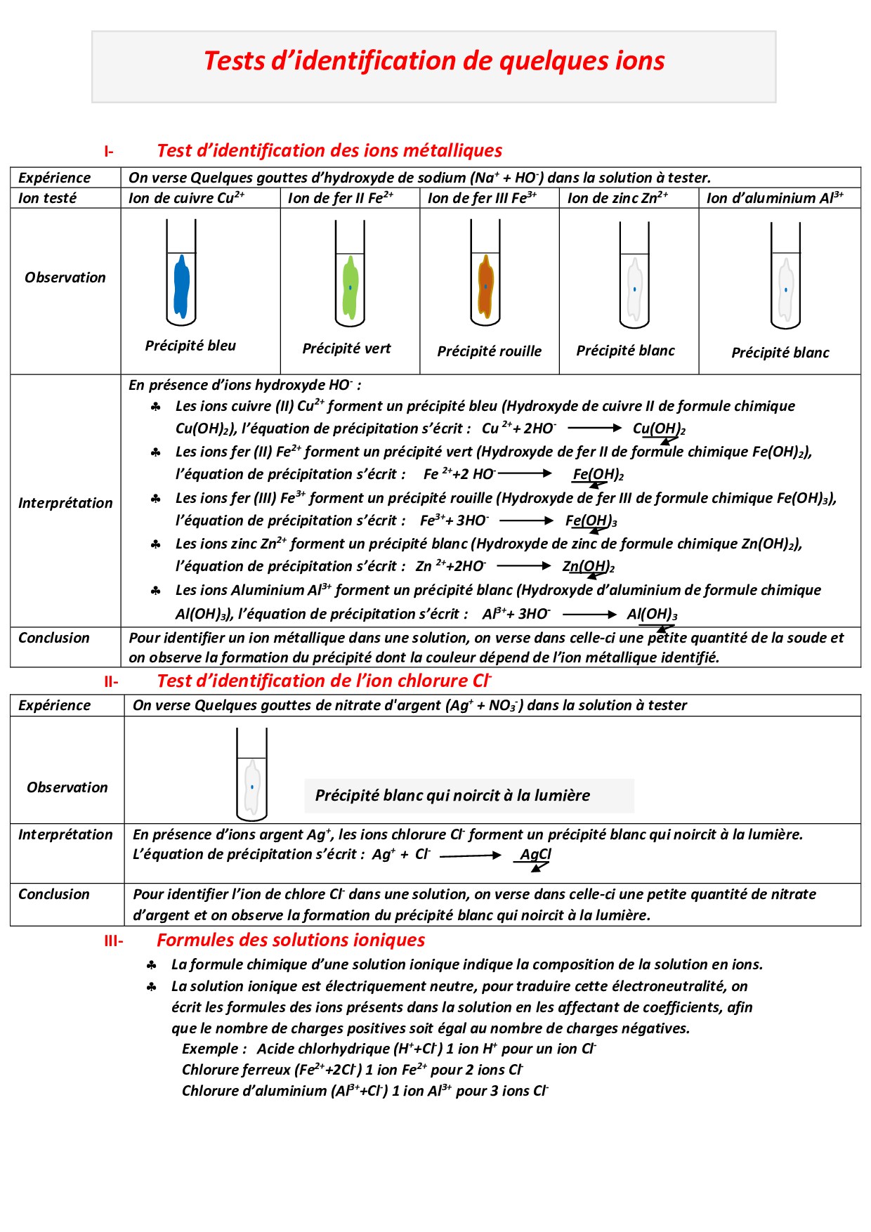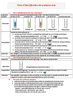 Tests de reconnaissance de quelques ions - Résumé de cours 3