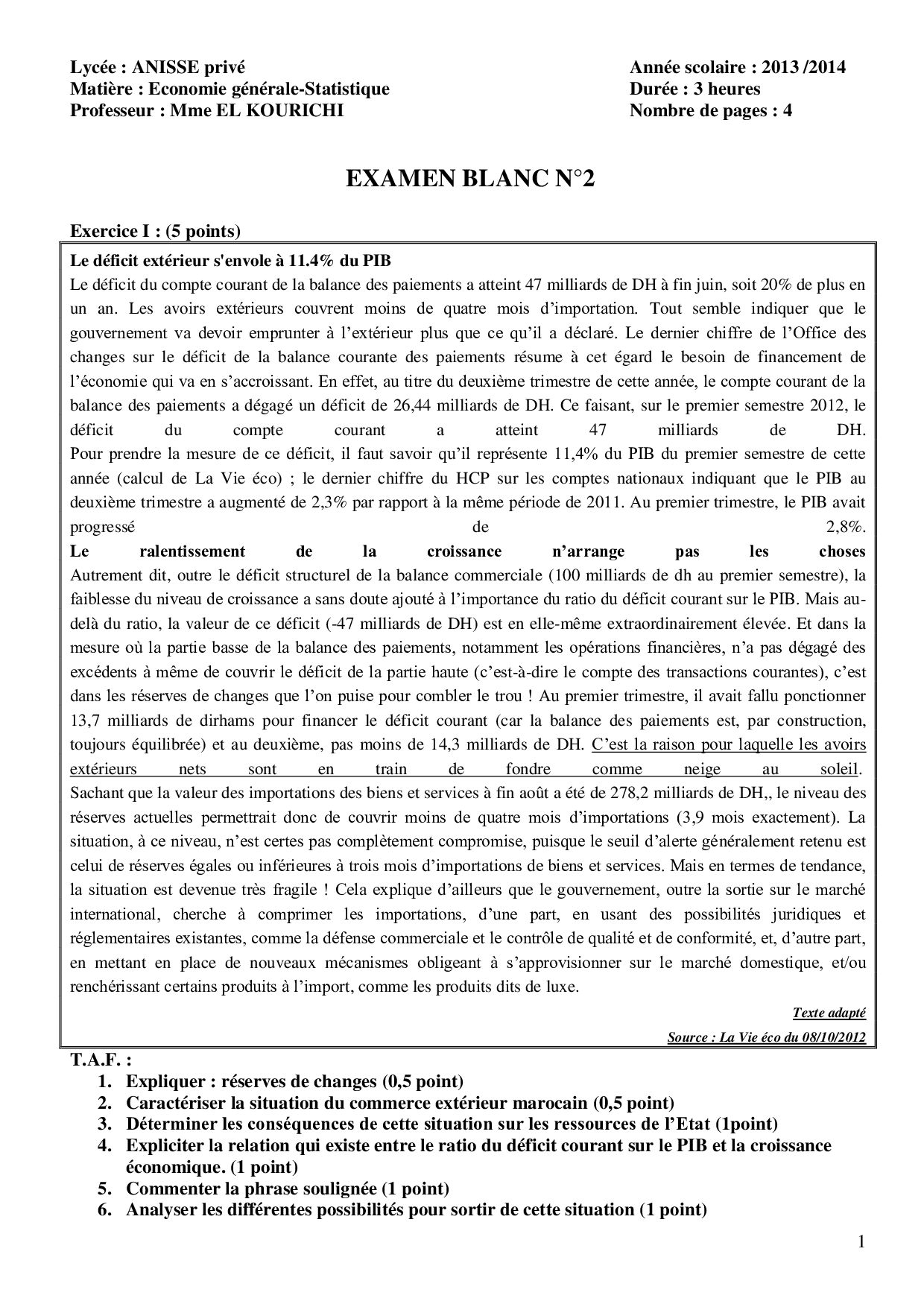 Examen Simili 13 - Statistiques 2 Bac Eco