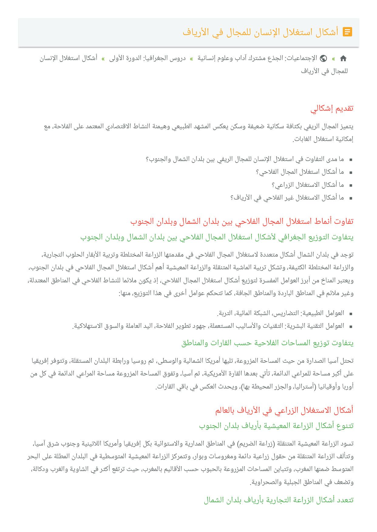 أشكال استغلال الإنسان للمجال في الأرياف